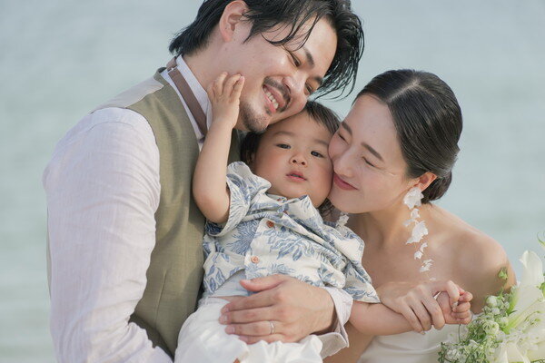 当日は晴天に恵まれ、海も空もチャペルも綺麗で素敵な挙式だったと言ってもらえました。なかなか出来ない家族旅行気分も味わえて良かったです。