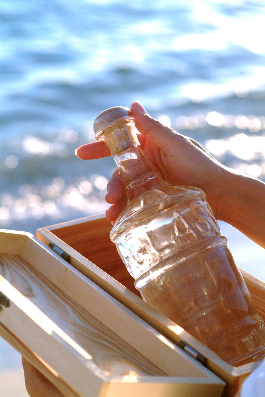 ~手作りの琉球ガラスボトル・琉球松と福木(ふくぎ)の木箱に入れてお届け~