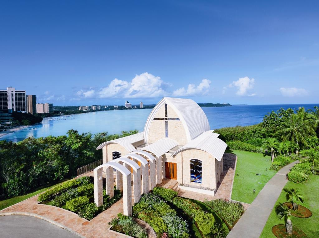 日本人に最も人気のあるホテル・ニッコー・グアム。その敷地内のタモン湾を一望にできるガーデンに囲まれた荘厳な石造りのチャペルです。“花嫁に贈る、楽園の庭”をコンセプトとした空間でのセレモニー、印象的なエントランスでのフラワーシャワーがロマンティックに演出します。