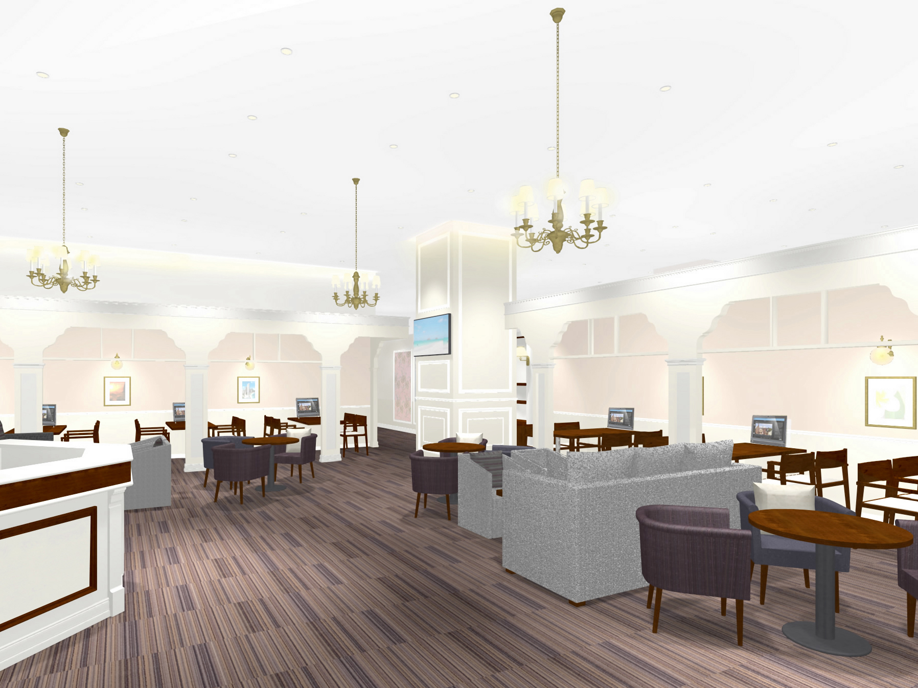 1.コンセプトは「トラディショナル リゾート ホテル」:“見せる”工夫満載のお店作りでカップルの叶えたいをカタチに「リゾ婚」の相談を行う挙式サロンには、タッチパネル型のパソコンを9台設置。23インチのモニターで見る、ハワイや ヨーロッパなどでの「リゾ婚」の様子は色鮮やか、お客様が叶えたい挙式のイメージを膨らませていただけます。また、約80着のウェディングドレスが設置されたドレスサロンも結婚を控えた花嫁のキレイになりたい!」願望を高めるべく、“見せる”ディスプレイにこだわりました。ドレスサロンの入口にはおすすめドレスコーナーを新たに設け、ワタベウェディングが提案する最新のプレミアムウェディングドレスをディスプレイします。また、ティアラやネックレス、イヤリングなどの花嫁のこだわり小物専用のディスプレイ棚を新設。トータルなドレスコーディネートの提案により、おしゃれな新婦の“こだわりたい”に応えます。