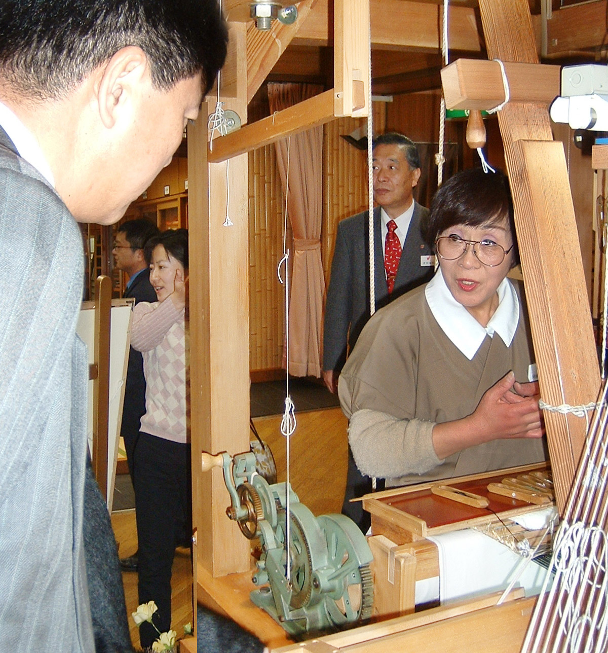 使節団一行は、「ワタベウェディング京都グランドプラザ」を訪問し、写真スタジオやウェディングドレス・和装のフロアを視察しました。特に、色打掛の制作現場であるハタ織り工房の実演や着付けのデモンストレーションでは、カメラのフラッシュや質問が多く飛び交うなど、日本のウェディング文化を興味深く見学していました。