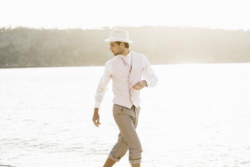 ビーチシーンでもさわやかな色合いが人気のタキシードです。