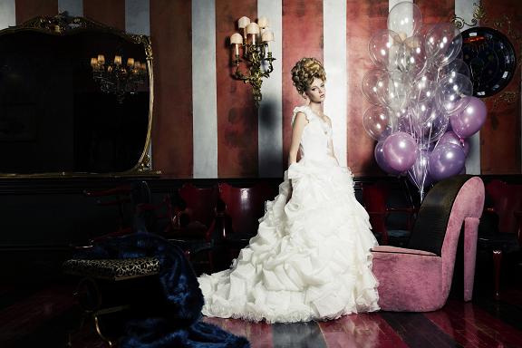 ふわふわのドレスに大きなリボン、ロングトレーンのしなやかでフェミニンなライン、人目を引くアシンメトリーのデザインと、光輝くグリッター、シルキー素材やビージングで、花嫁様の夢を叶える、プリンセスな一日を演出します。