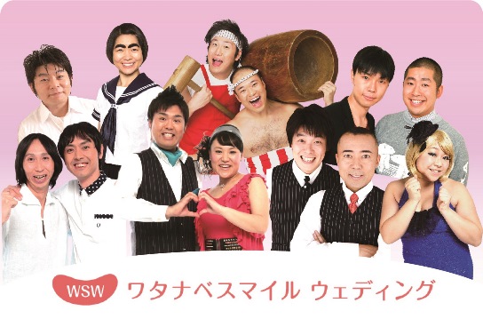 「ワタナベスマイルウェディング」は、株式会社ワタナベエンターテインメント所属のお笑いタレントが結婚するふたりを「幸せな笑い」で盛り上げるプロジェクトです。誰もが知っている人気お笑いタレントが、主役のおふたりはもちろんのこと、会場全体を笑って泣けるあたたかい雰囲気に包む演出を用意しています。