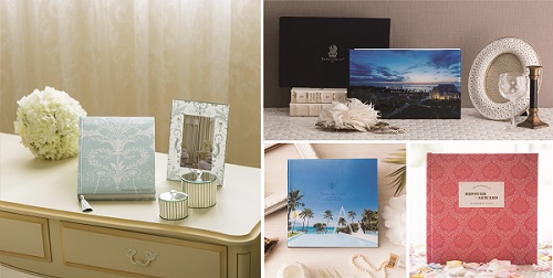 今秋リニューアルした沖縄の「アクアグレイス・チャペル」限定アルバムは、ブライズルームのコーディネートが英国ブランド「ローラ アシュレイ」であることから、アルバムにおいても「ローラ アシュレイ」とコラボレーションし、女性らしい繊細なデザインに仕上げました。ハワイ・ワイキキでひと際目立つピンク色に彩られた海辺のホテル「ロイヤルハワイアン・ラグジュアリーコレクションリゾート」のガーデンで叶う「ロイヤルハワイアン コンセプチュアルウェディング」限定アルバムは、ホテルのイメージを反映したピンク色の表紙が特徴です。その他、ハワイ屈指のリゾート地・コオリナにあるチャペル「ホヌカイラニ コオリナ・プレイス・オブ・ウェリナ」限定アルバムと、バリ島の高級リゾート施設「ザ・リッツ・カールトンバリ」内にあるチャペル「ザ・マジェスティックチャペル」限定アルバムは、表紙にそれぞれのチャペルのロゴとご自身のウェディング写真を使用することができるため、非常に限定感の高いアルバムです。