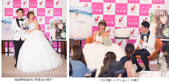 ワタベウェディング株式会社【本社:京都府京都市、資本金41億7,637万2,000円、東証第一部上場、代表取締役 花房伸晃】は、株式会社主婦の友社と、「S Cawaii!」の人気モデル“ちぴ”こと近藤千尋さんプロデュースのウェディングドレス「ちぴドレス」のお披露目及び初のスタイルブック「ちぴ本」の発売を記念した記者発表会を、7月2日(土)東京青山のアクアヴィットにて開催しました。