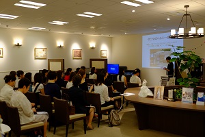 『プレ花嫁向け結婚&健康イベント』は、 “内側からきれいになろう”をテーマに、ワタベウェディングプランナーによるリゾ婚の基礎がわかる「リゾ婚講座」や、タニタ管理栄養士による健康的で美しいからだ“ブリリアントボディ”を実現するための「健康セミナー」、タニタ食堂のヘルシー弁当試食会、ブライダルジュエリープレゼント抽選会などを実施しました。当日は、これから挙式を予定されている女性約25名が参加しました。