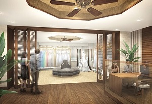 「ワタベウェディング 鹿児島店」は、国内・海外リゾートウェディングを中心に、衣裳や帰国後パーティなどを取り扱います。今回の移転オープンでは、ご来店のお客様に“リゾ婚”のイメージを膨らませていただくために、コンセプトを「Traditional Resort Hotel」とし、リゾートを感じていただけるような空間づくりをしております。今後は、地域密着型のウェディングサロンとして、随時リゾートウェディングの魅力を発信してまいります。