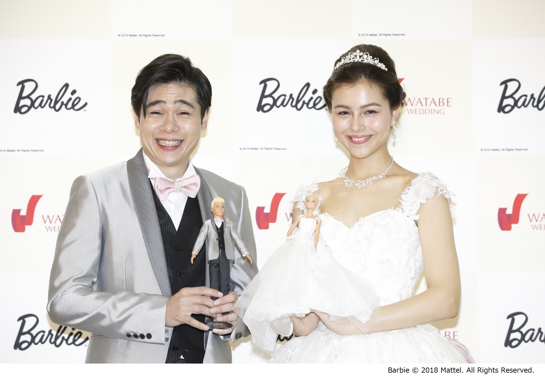 当日は、実際にコラボウェディング衣裳のタキシード「Barbie Tuxedo-1」を着用頂いた破天荒キャラでおなじみの平成ノブシコブシ吉村崇さんと、ウェディングドレス「Barbie-2」を着用頂いた一昨年メジャーデビューを果たした注目のアーティスト、セレイナ・アンさんが特別ゲストとして登場。Barbieの大ファンだというセレイナさんにドレス着用の感想を伺うと、「お姫様になりきった気分で、バービーとおそろいのドレスを着れてうれしいです。人生初めてのウエディングドレスです。」と感激した様子でした。また吉村さんも「このタキシードはおしゃれですよ。少しずつ(衣裳細部の)色が違うところがおしゃれ。私服で着てもモテそうですね。」感想を述べられました。