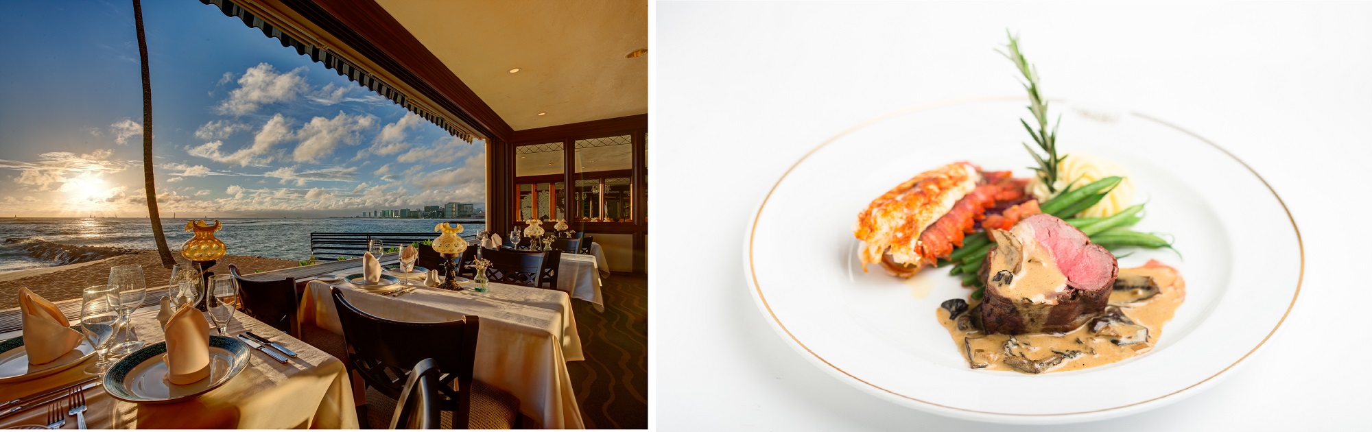 「ミッシェルズ・アット・ザ・コロニー・サーフ」は、ワイキキのカイマナビーチに面し、“ワイキキで最も絵になるフレンチレストラン”として知られる1962年創業のレストランです。数多くのハリウッドセレブや、日本の芸能人たちがお忍びで通う名店としても名を馳せています。ホノルルマガジンの「ベスト・レストラン・ロマンス賞」など数々の賞を受賞しており、レストラン予約サイトOpenTableの「2017年米国で最もロマンティックなレストラン100」にもハワイで唯一選出されています。また、2019年には新たに「111-HAWAII AWARD(ワン・ワン・ワンハワイアワード)2019」において“ベストビューレストラン”部門の1位にあたる「ゴールド」を獲得しました。これらの評価もあり、ローカルの方々には特別なレストランとして人気で、プロポーズやお祝い事など人生の大切なシーンでよく利用されています。