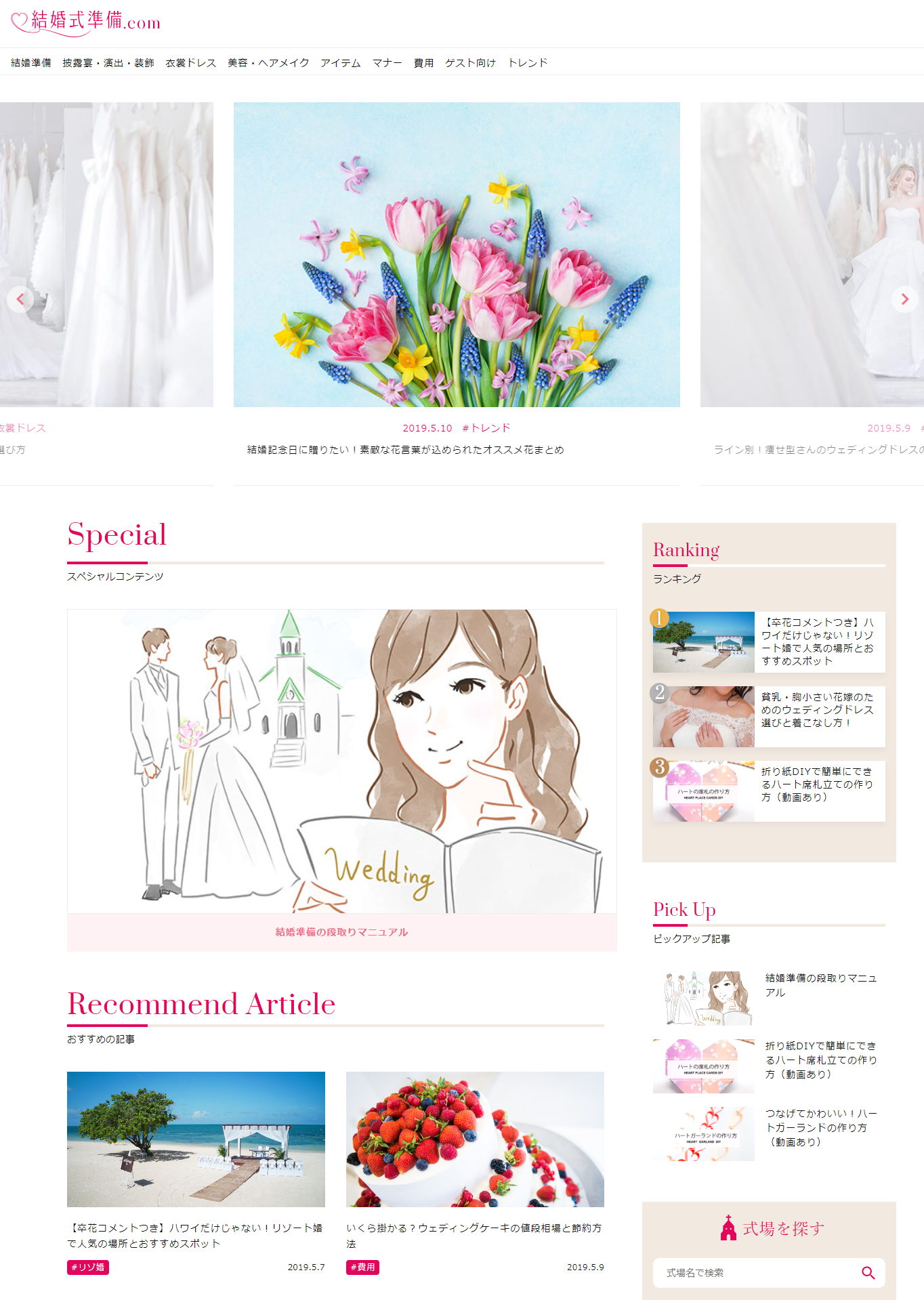 本サイトでは、会場検索機能を設けているほか、記事コンテンツの内容に関連するウェディングのプロが選んだ会場を紹介しています。また、気になる会場はサイト内のお問い合わせフォームより、気軽に資料請求や来店予約をすることが可能です。また、結婚式準備が楽しくなるような「DIYウェディングアイテムの作り方動画」や、ゲストも参加したくなるような「演出アイデア特集」や「おもてなし作法」など、結婚式の準備がはかどるような幅広い情報をお届けいたします。