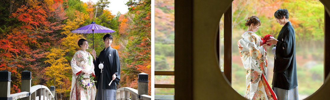 ワタベウェディング株式会社【本社:京都府京都市、資本金41億7,637万2,000円、東証第一部上場、代表取締役 花房伸晃】は、全国各地の紅葉ロケーションの中でウェディング写真を残すことができる「秋のロケーションフォト」を全国のワタベウェディングフォトスタジオにて、2019年10月15日(火)より実施いたします。