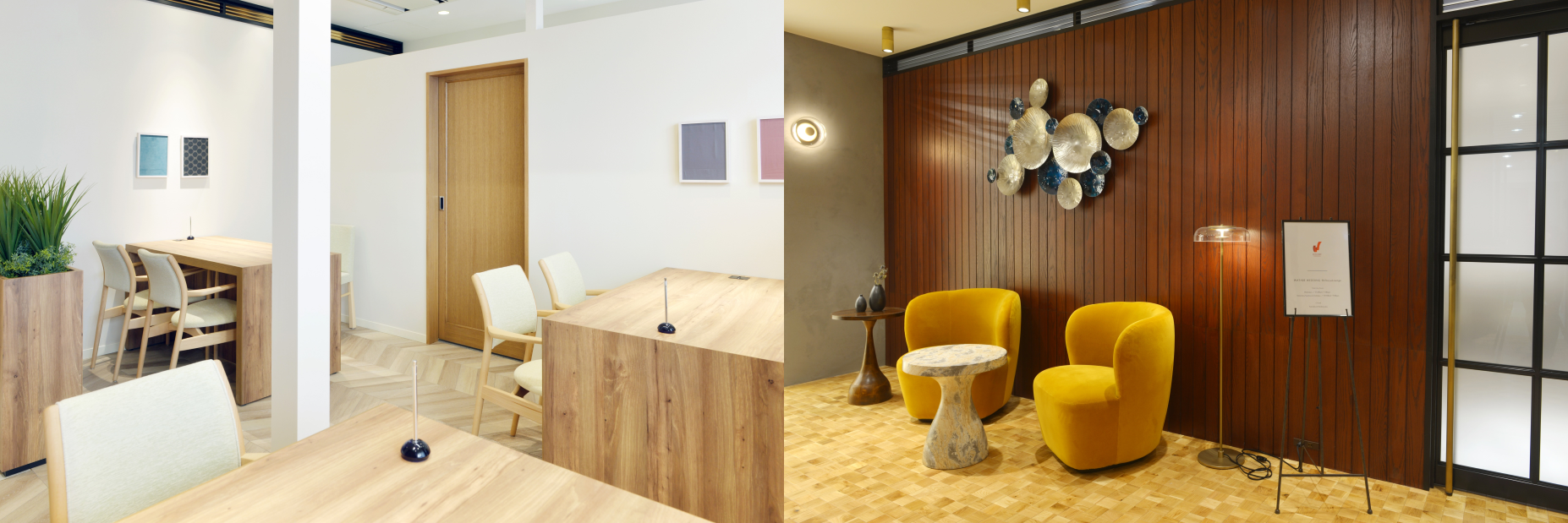 当社初の渋谷店舗となる「ワタベウェディング 渋谷ラウンジ」では、若者が集う、流行の発信地において、最新のトレンドを取り入れたリゾートウェディングを提案してまいります。内装コンセプトを「EURO NATURAL MODERN」とし、洗練されたデザインでありながらナチュラルで落ち着ける空間づくりをしています。店内は、ナチュラルな木のぬくもりを感じるリゾートらしいデザインを取り入れ、リラックスしてお打合せができるようプライベート感を大切にした居心地の良い空間となっています。また、お客様によりくつろいでお過ごしいただけるよう、店内には「ピースフルスマイル」という柑橘系の穏やかなアロマの香りを取り入れています。