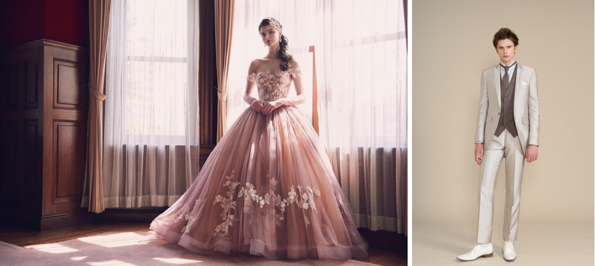 ■プレゼント:バレンタインを想起させるピンク&ブラウンのカラードレスとタキシードによる “チョココーデ”での写真撮影(撮影データ1カット付)