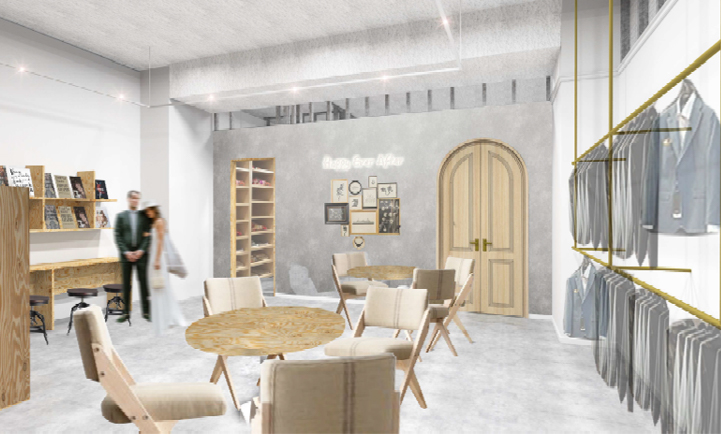 この度オープンする「ワタベウェディング 福岡フォトスタジオ」は、天神駅から徒歩約4分、西鉄福岡(天神)駅より約6分の昭和通り沿いに位置する「大隈ビル」内にオープンする写真サービス専門店です。撮影スタジオは、日本のポップカルチャーやミックスカルチャーを取り込みながらも、クラシックさとラグジュアリーさを兼ね備え、多様なシチュエーションをイメージした撮影が可能なつくりになっております。また、フィッティングルーム3部屋、メイクルーム、接客ブース、フォトセレクトスペースは各2スペースずつ、また衣裳スペースを備えております。衣裳は、ドレス・タキシードはもちろんのこと、打掛や白無垢など約150着以上を店内に常備しており、撮影シーンに合わせてお選びいただけます。