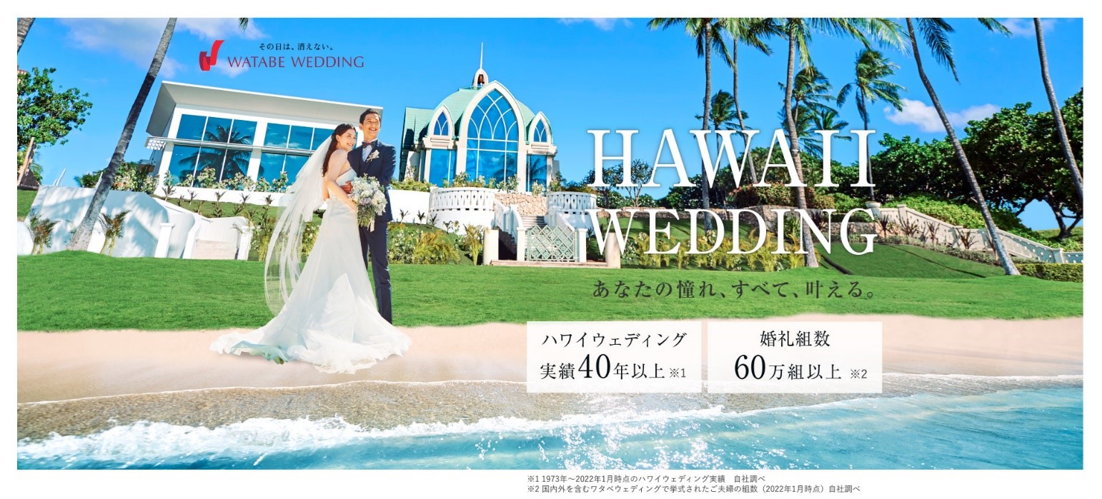ワタベウェディング株式会社【本社:京都府京都市、代表取締役 社長執行役員:岡田 正】は、2022年4月29日(金)~5月8日(日)の期間、ハワイ挙式を新規お申し込みの方へ人気ホテル「+1泊分」をプレゼントする「待ちに待ったハワイ旅行!ツアー再開!今ならホテル1泊プレゼントGWキャンペーン」を開始いたします。