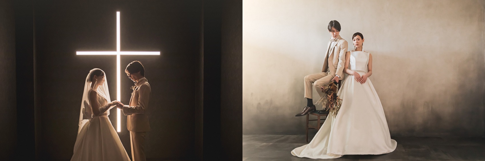 チャペル風スタジオや20種類以上のバリエーション豊かな背景で撮影が叶う