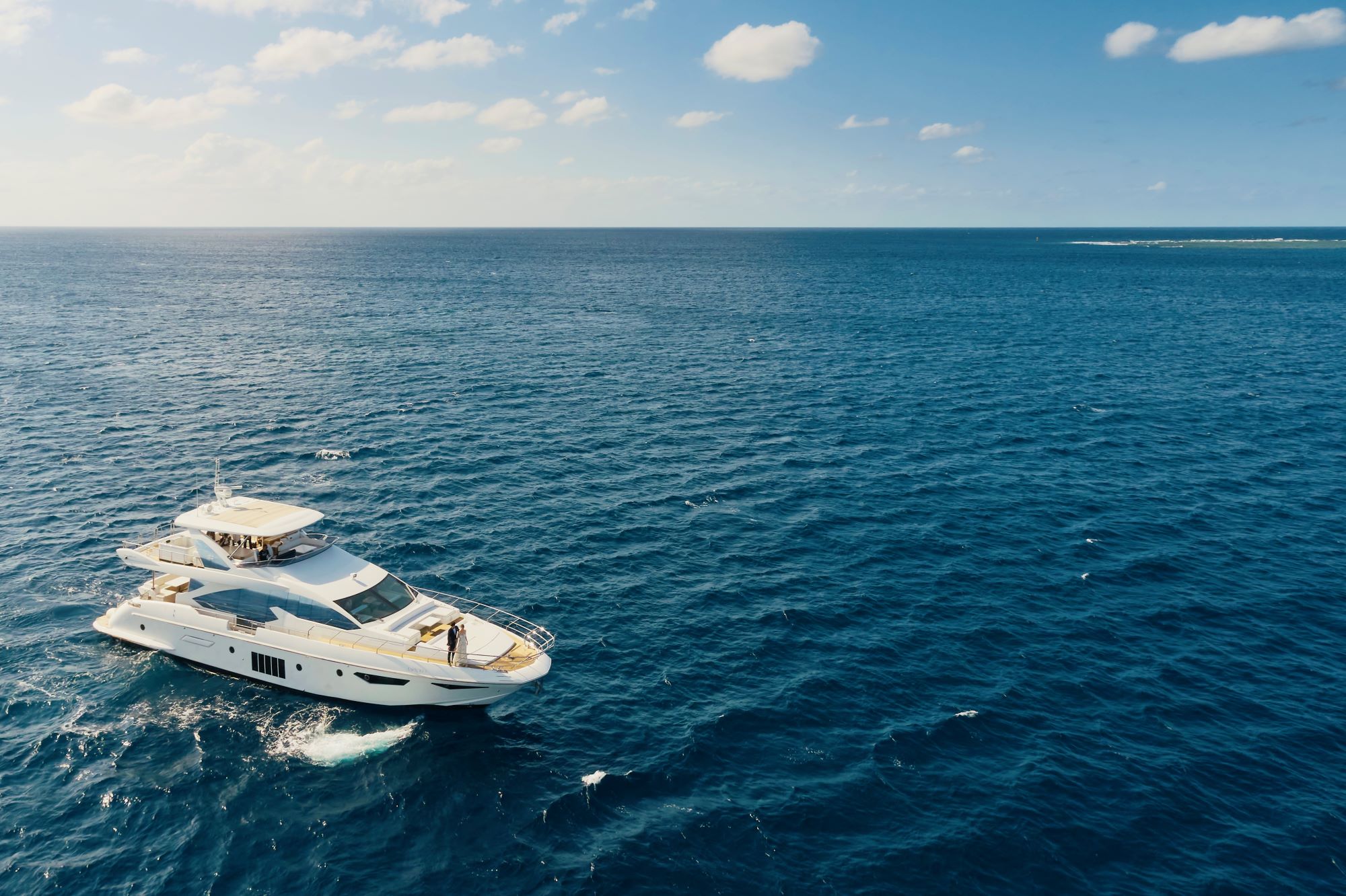 当サービスは、世界屈指の透明度を誇る宮古島の海上で、レセプションパーティや商談、カンファレンス、ウェディング等のスペースとしてプライベートクルーザーを1日1組限定でご利用いただけます。長年に渡り世界中のセレブから愛され続けるイタリアの高級クルーザーメーカーであるAzimut社のクルーザー「Azimut 80」にて、 “海上のスイートルーム”をコンセプトに特別な船上の旅を提供いたします。沖縄県に停泊するクルーザーの中でも最大級の3階建てプライベートクルーザーには、ジャグジーやバーカウンター、BBQグリル、ソファースペース、サンベッド、リビングスペース、ダイニングテーブル、テラススペース、キッチン等を完備していますので、お客様一人一人に合わせた特別な過ごし方で、お楽しみいただけます。基本プランは110万円(税込)からのご提供で、4時間のクルージングと、クルーザーへの往復送迎、シャンパン3本、アメニティ各種が含まれています。船長判断により出航ができない場合は、延期またはキャンセルを無償にて対応いたします。