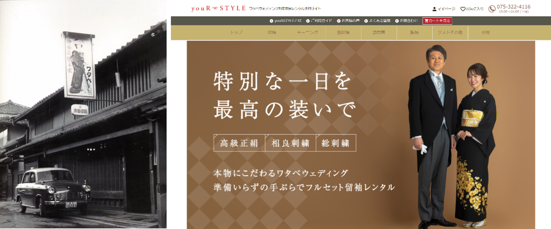 1953年、当社創業者の渡部フジは、当時花嫁衣裳が不足していた背景から、自身の衣裳を無料で貸し出すという"ボランティア"をきっかけに当社の前身である『ワタベ衣裳店』を創業しました。その後、リゾ婚のリーディングカンパニーとなった当社は、本年、創業70周年を迎えました。当社では2014年に、「近くに列席衣裳をレンタルできるところがない」、「高品質の衣裳を、費用をおさえて着用したい」などの様々なお客様の声にお応えし、全国どこからでも豊富な列席衣裳をレンタルできる予約サイト「youRSTYLE」をスタートしました。現在「youRSTYLE」では、「留袖」「色留袖」「訪問着」「振袖」などの和装を中心に、400種類以上ご用意しており、様々なお客様に着用いただけるようサイズ展開の豊富さにもこだわっています。生地は合成繊維を使用せず、選び抜いた高級正絹など素材にこだわった品質の高い衣裳を低価格で提供しており、すべての和装衣裳は、昔ながらの技法で作られた染模様・刺繍柄を施され、立体感のある色彩や風合いを味わうことができます。お父様の「モーニング」等もご用意しておりますので、ご家族揃ってレンタルしていただけます。