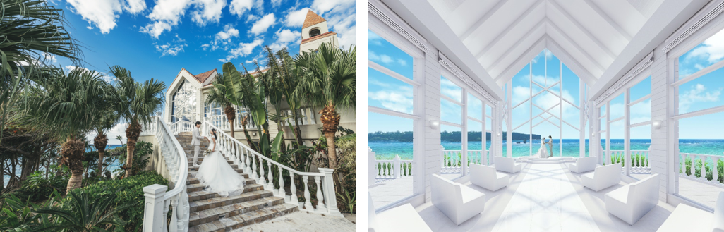ワタベウェディング株式会社【本社:京都府京都市、代表取締役 社長執行役員:宮瀬 昌行】は、沖縄県国頭郡恩納村にあるリゾートホテル「ANAインターコンチネンタル万座ビーチリゾート」内で2020年まで展開していた「コーラルヴィータ・チャペル」を「ザ・シーサイドガーデン ラグーン大聖堂」に名称変更し、フォトウェディングに特化したチャペルとしてリニューアルオープンいたします。これに伴い、ECサイト「EASY by WATABE WEDDING」(https://www.watabe-wedding.co.jp/easy/)にて、2024年1月1日(月)よりフォトプランの販売を開始し、2024年4月1日(月)より撮影を開始いたします。