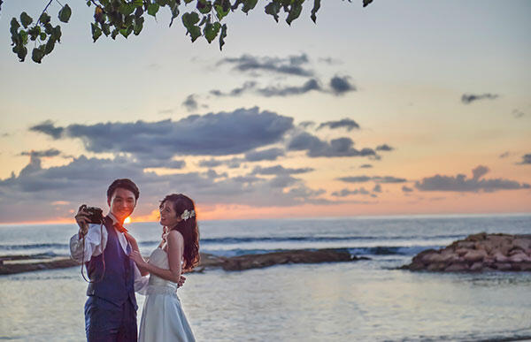 ハワイでの結婚式を報告する時、最も気軽に利用できるのがウェディングフォト。
