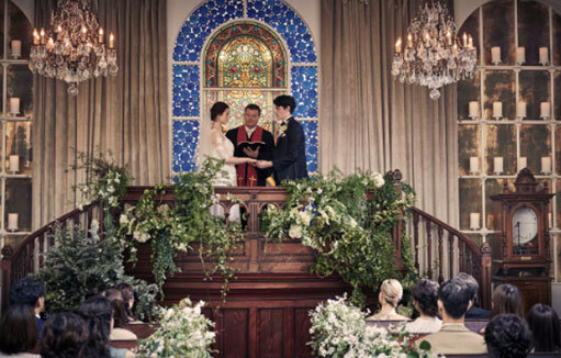 入場、誓いの言葉、指輪交換、結婚証明書サインなど。