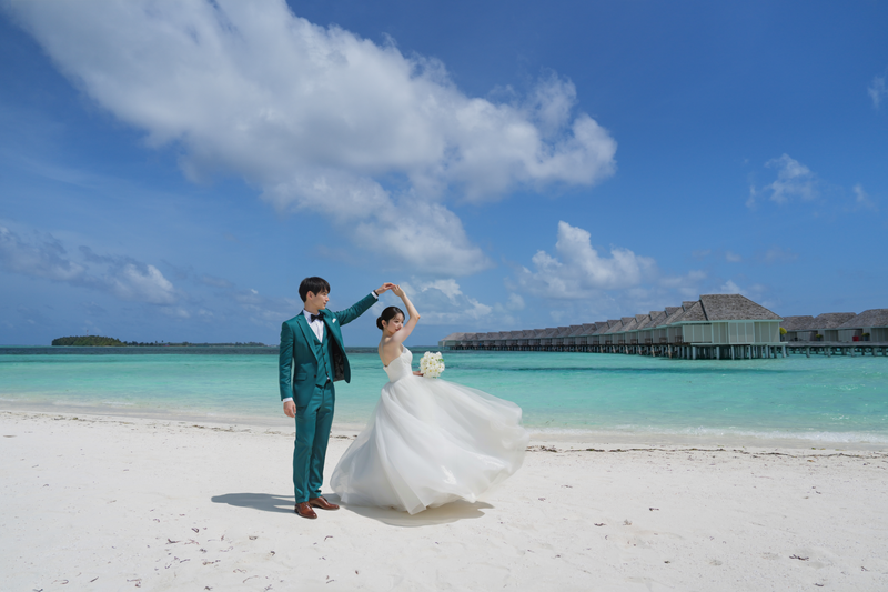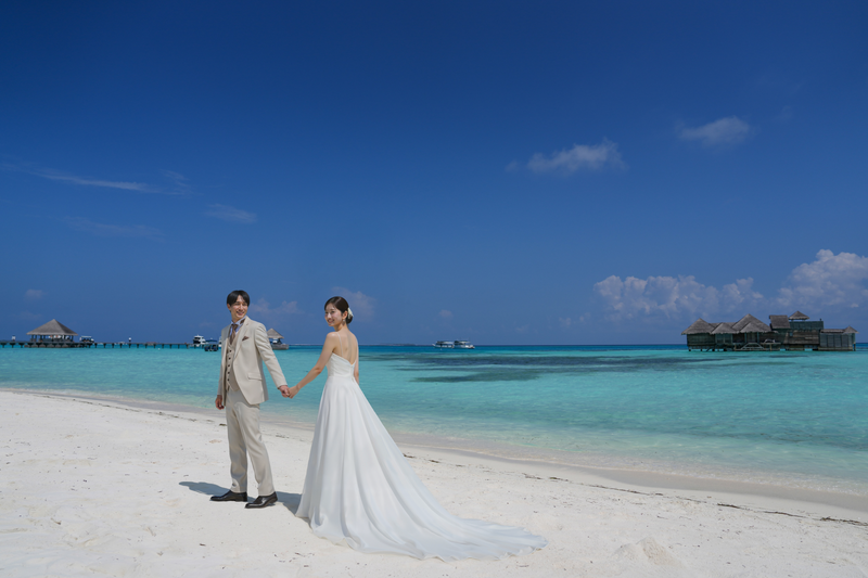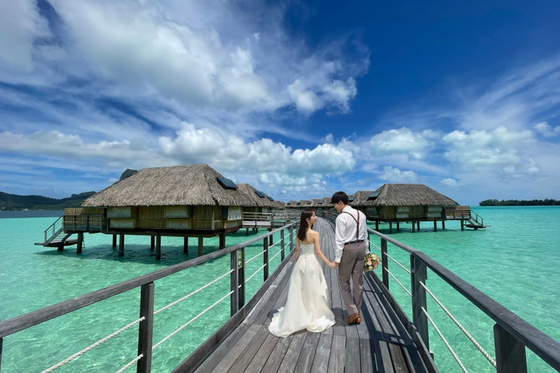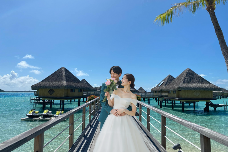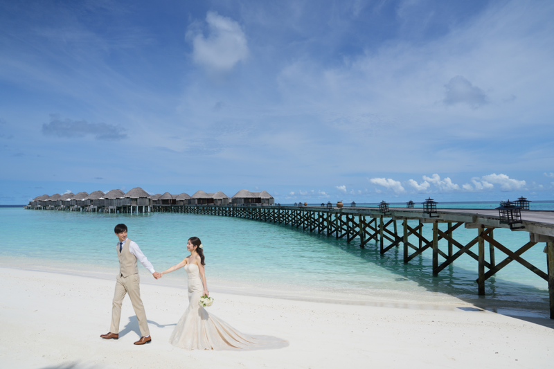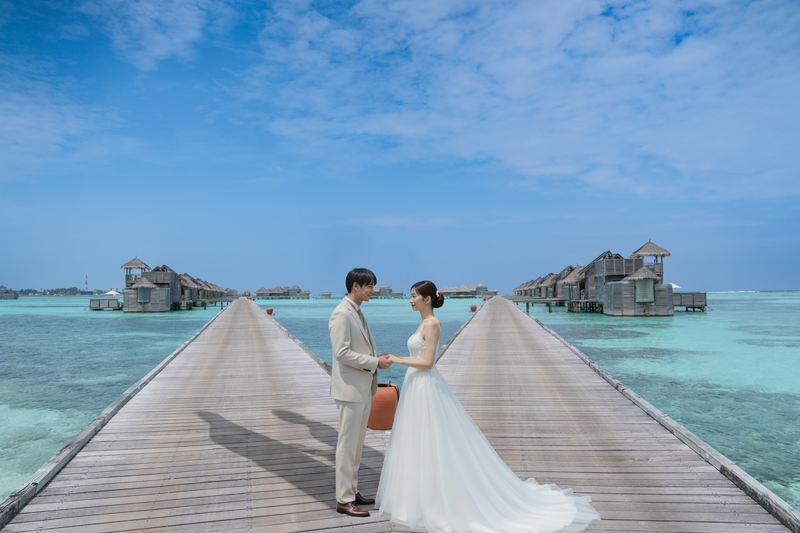 透き通る海に伸びる桟橋と水上ヴィラ。世界が憧れる楽園で、特別な瞬間を美しく。