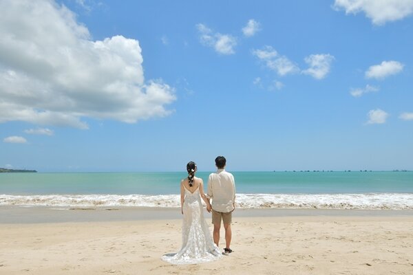 リゾートでのフォトウェディンを代表とするビーチ撮影。バリ島では青い空、青い海以外にもきめ細かい綺麗な砂浜が広がるビーチにてバリならではの風景に囲まれての撮影が叶います。現地の可愛いお小物をつかって、よりバリ島らしいお写真を残すのも素敵です。