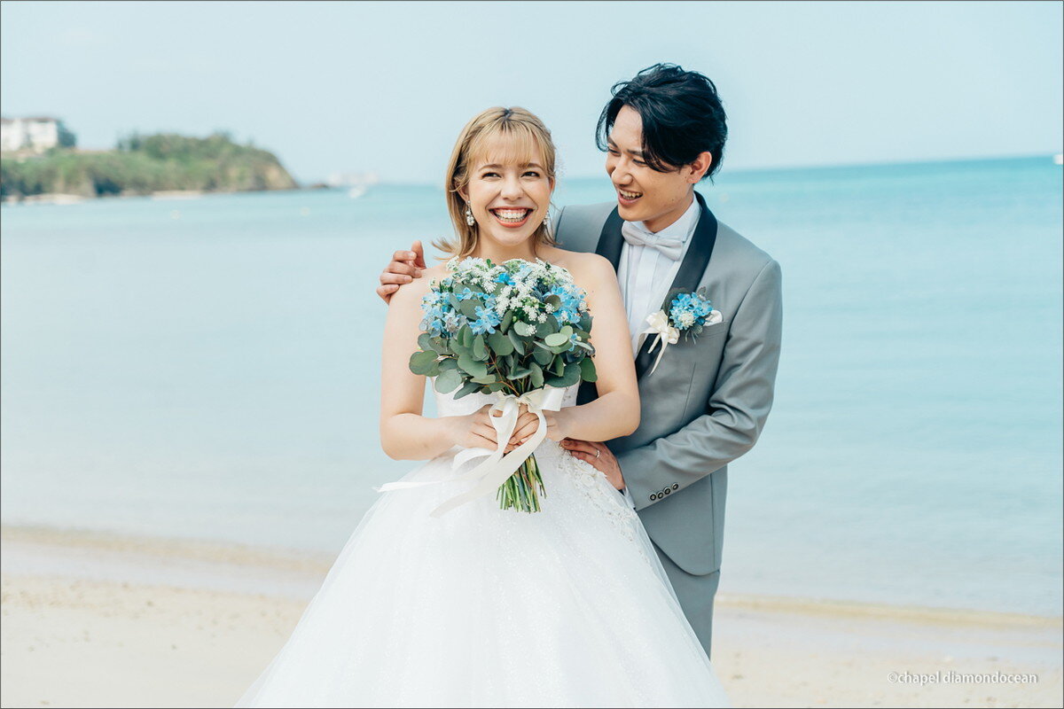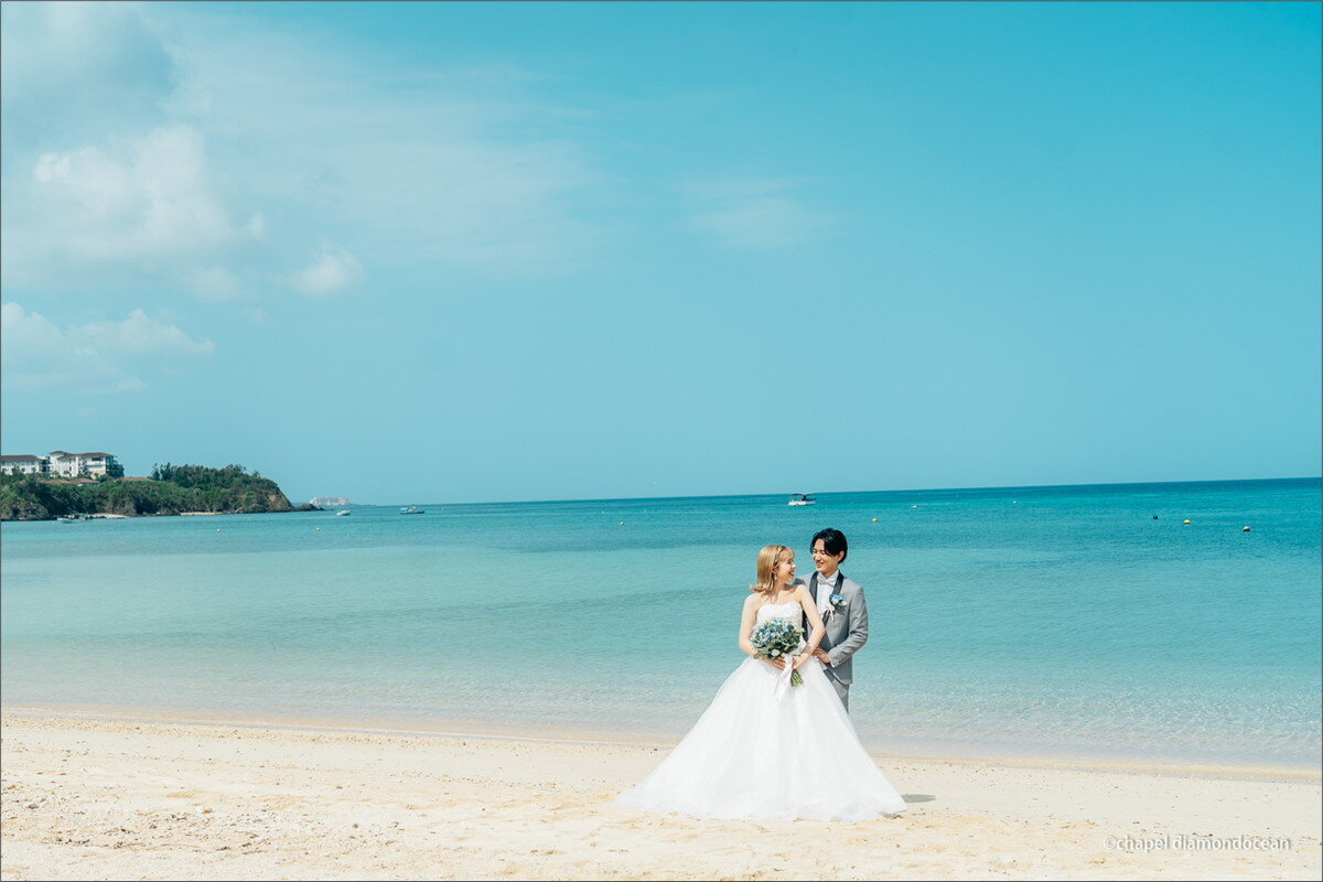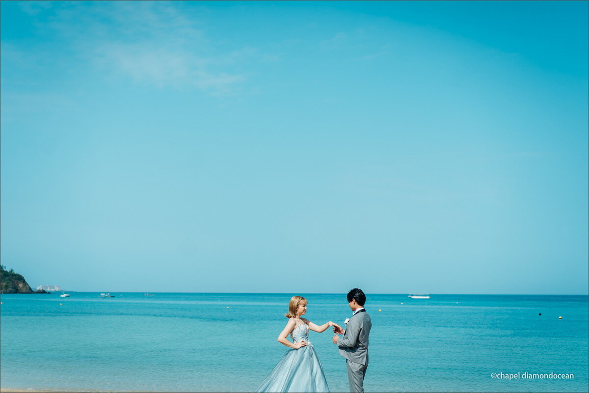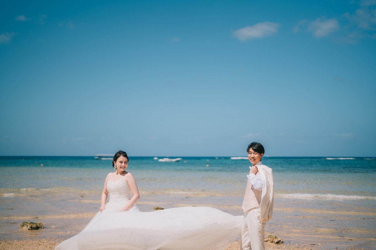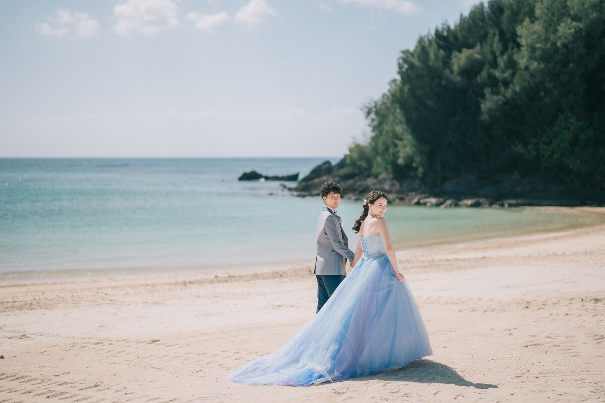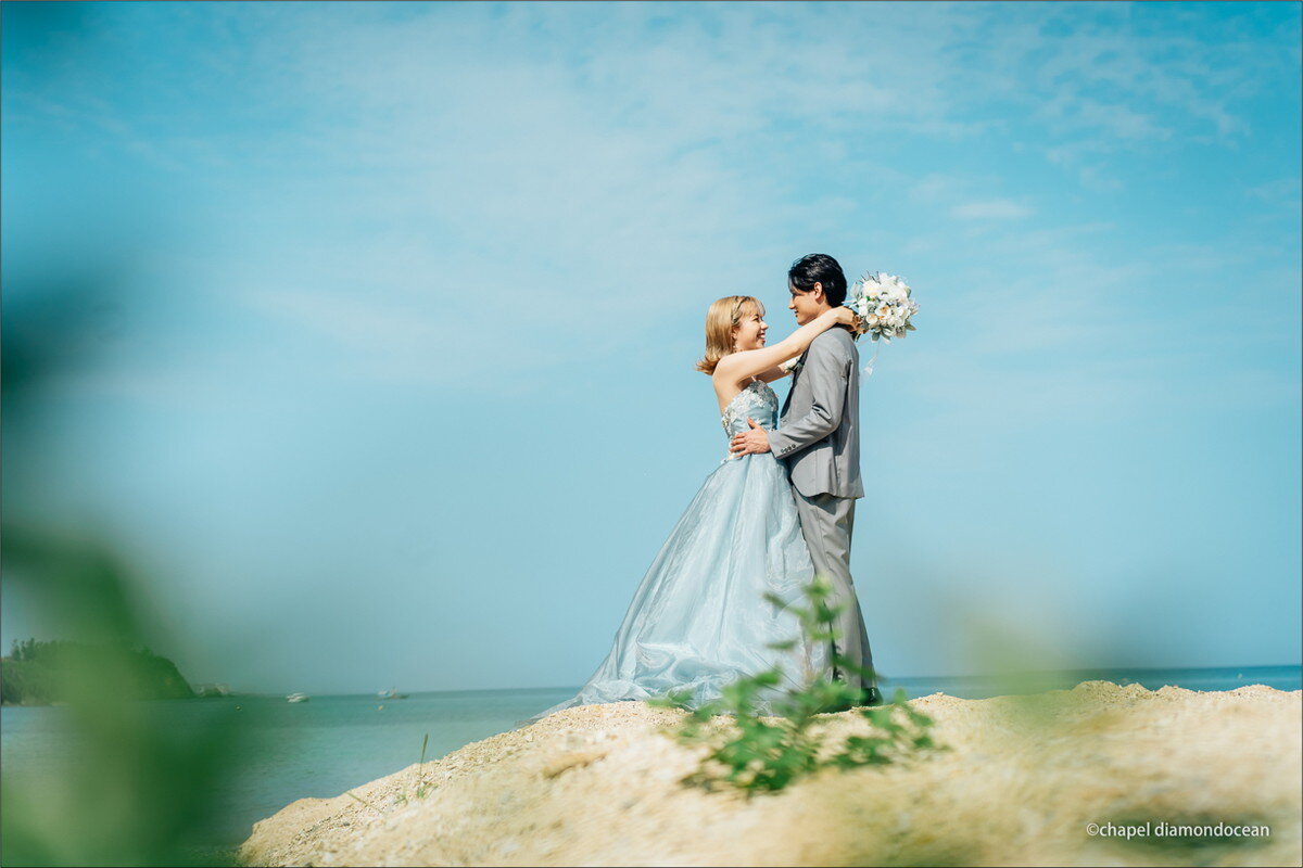 このビーチだからこそ叶う、自然が舞台のフォトウエディング。見渡す限りの青く美しい海と明るい空に包まれながら、ふたりの笑顔がいちばん美しく輝く瞬間を残します。