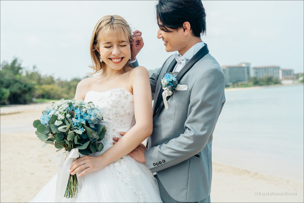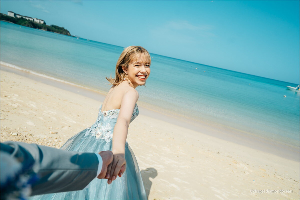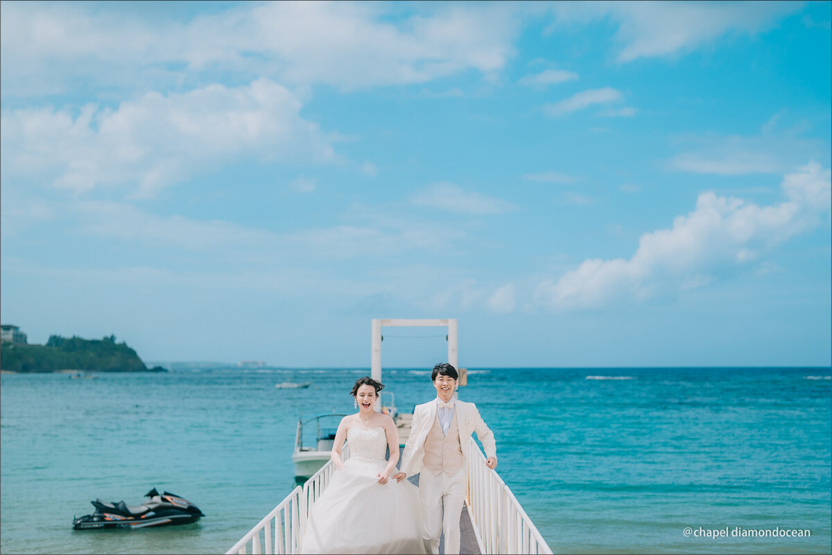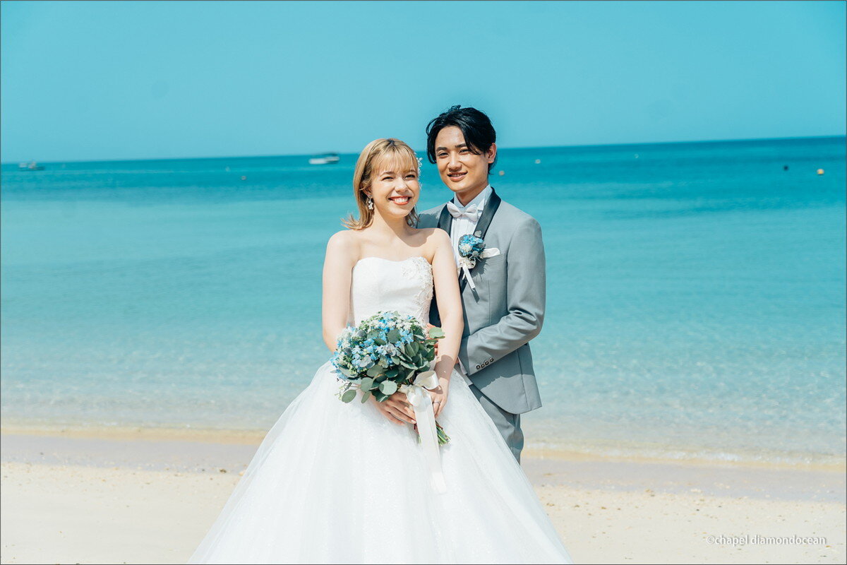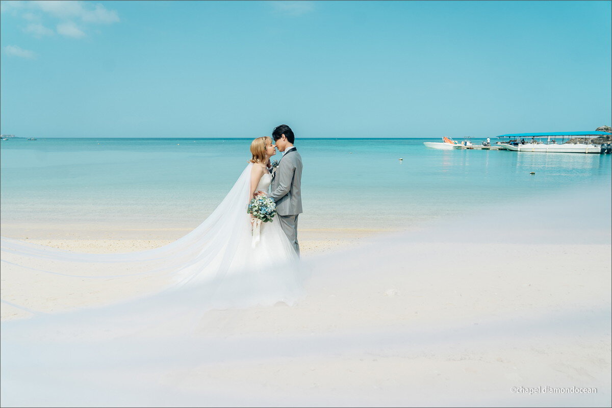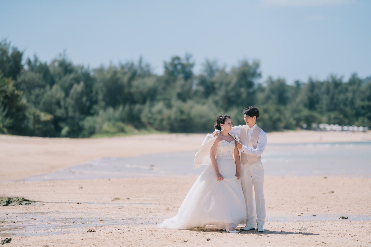 このビーチだからこそ叶う、自然が舞台のフォトウエディング。見渡す限りの青く美しい海と明るい空に包まれながら、ふたりの笑顔がいちばん美しく輝く瞬間を残します。