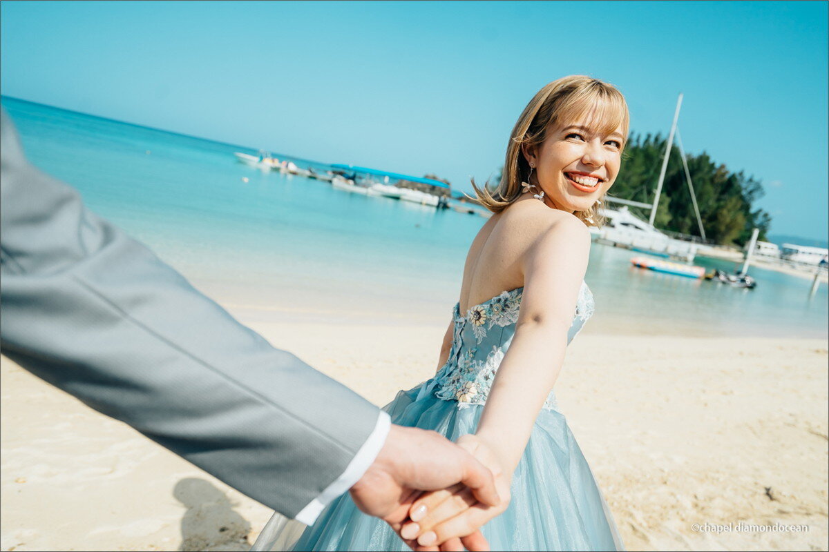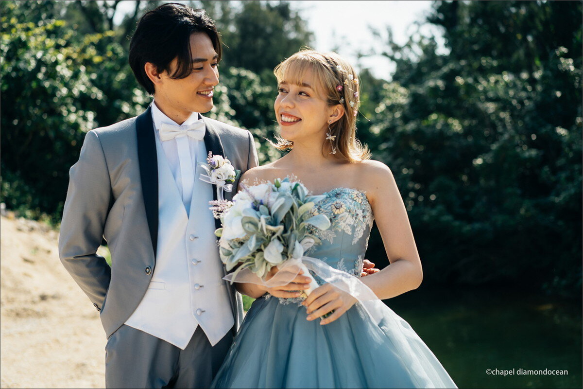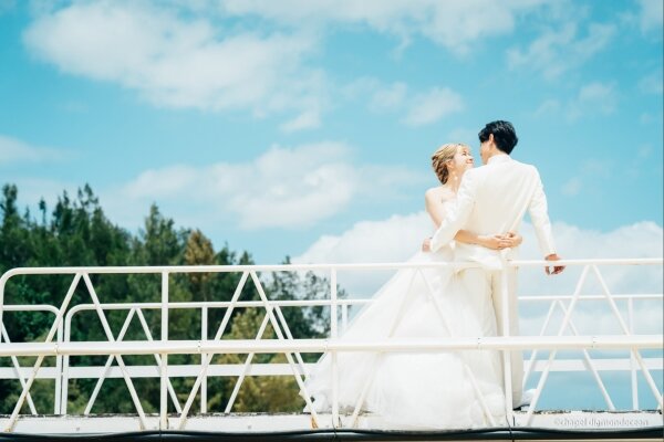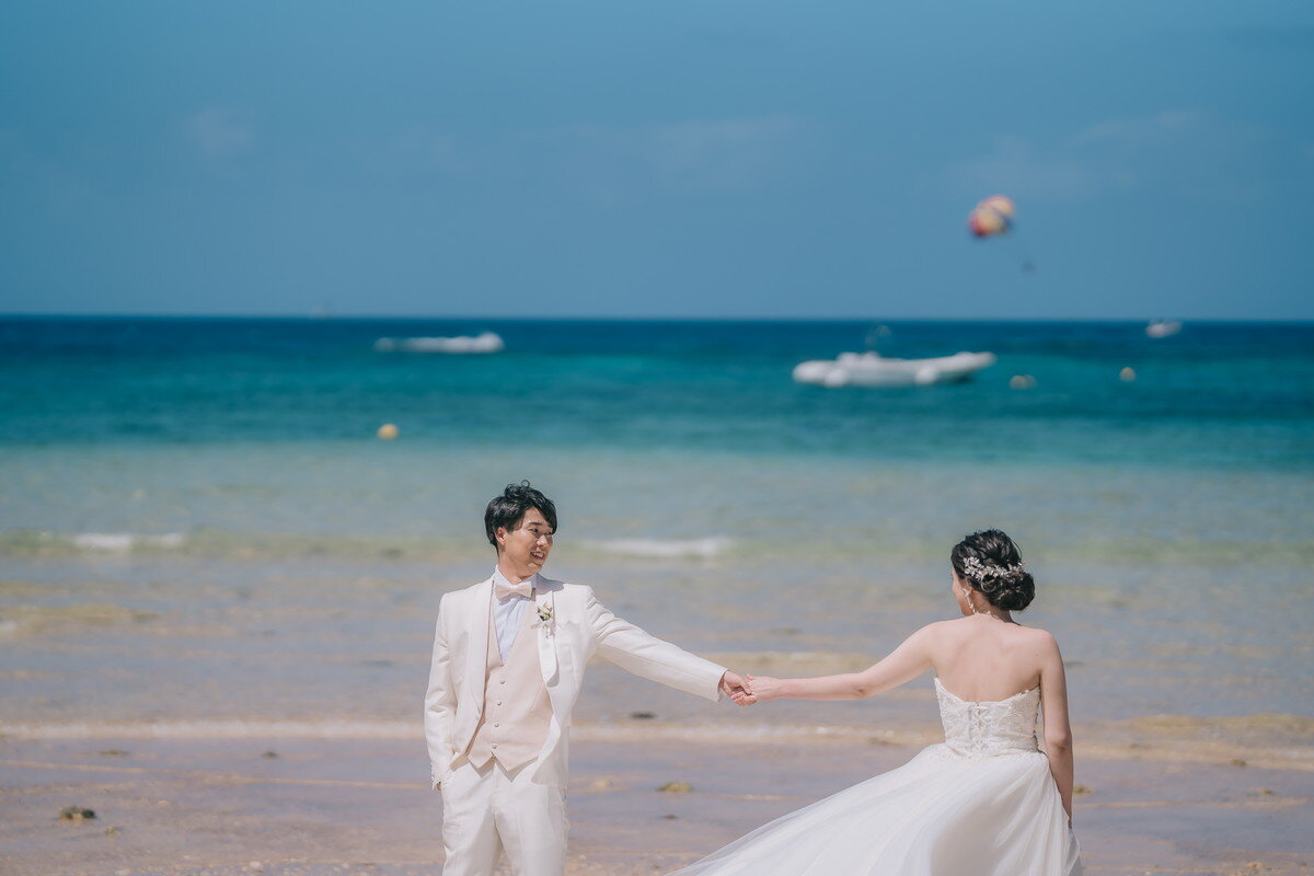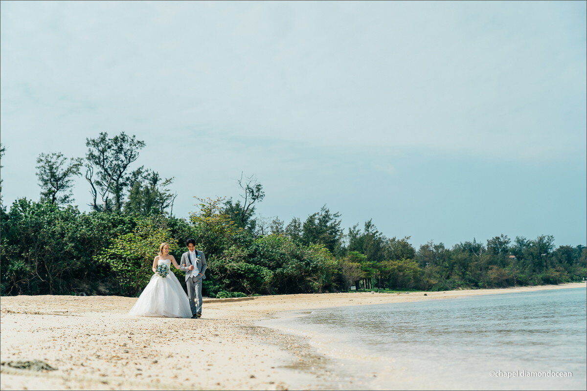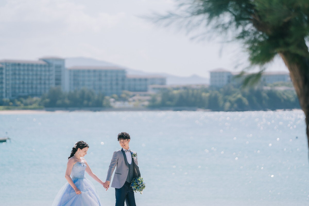 このビーチだからこそ叶う、自然が舞台のフォトウエディング。見渡す限りの青く美しい海と明るい空に包まれながら、ふたりの笑顔がいちばん美しく輝く瞬間を残します。
