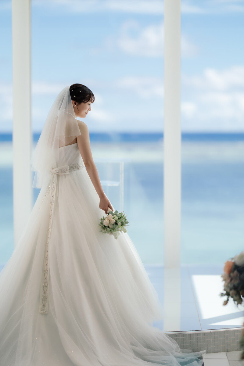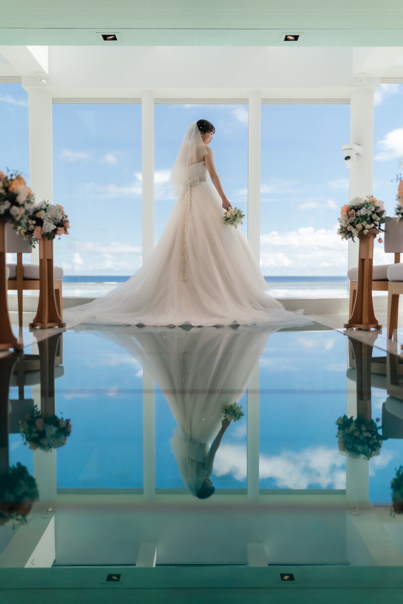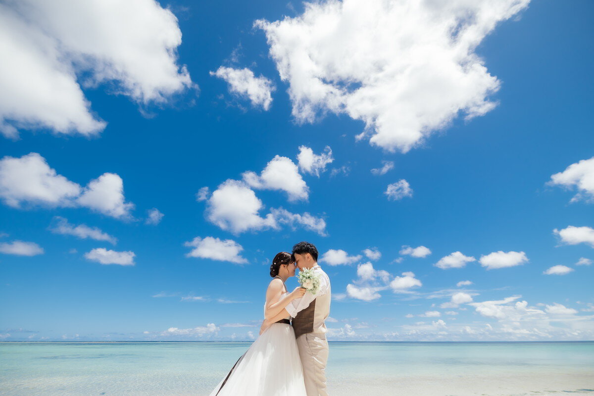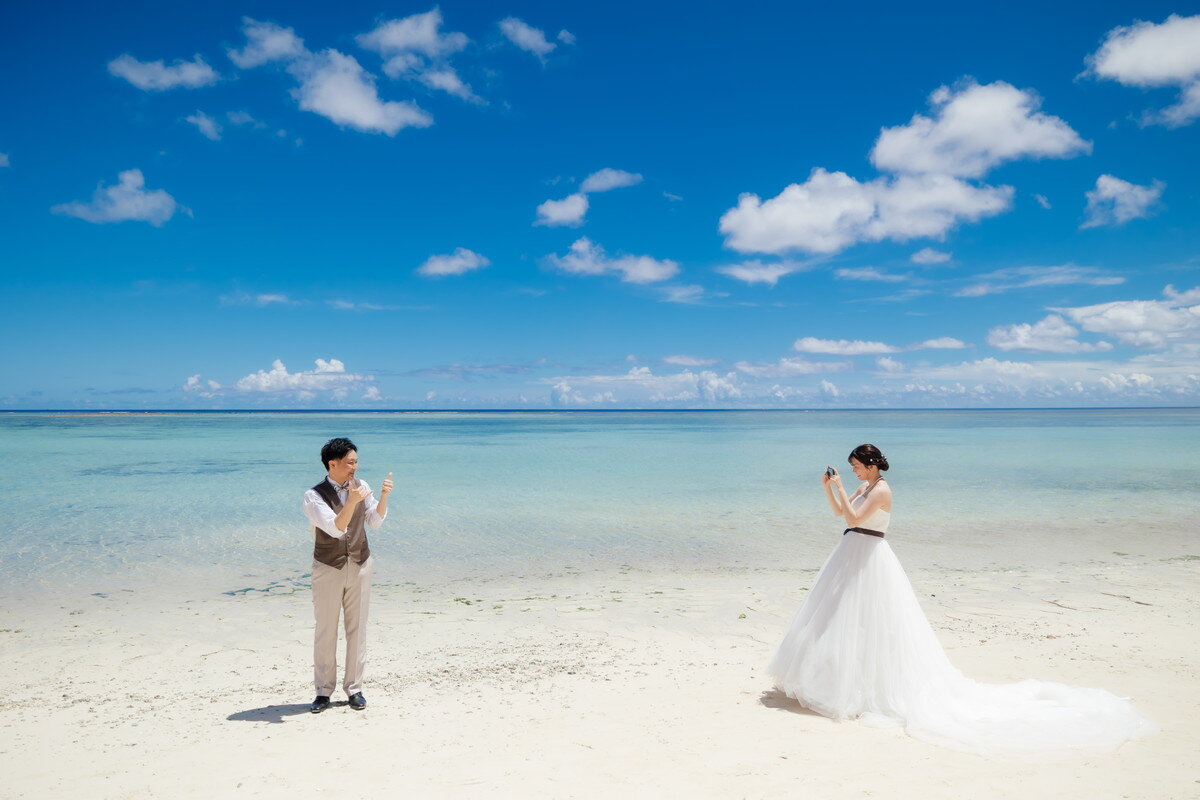 空と海を近く人感じながらのフォーマル撮影、透き通るほどの美しさに見惚れる海を背景にしたビーチ撮影、おしゃれなフォトスポットがあるガーデンでの撮影が叶います。写真のバリエーションも増えるのでお揃いのアイテムを用意してロケーション毎に雰囲気を変えた撮影を楽しむのもおすすめです。