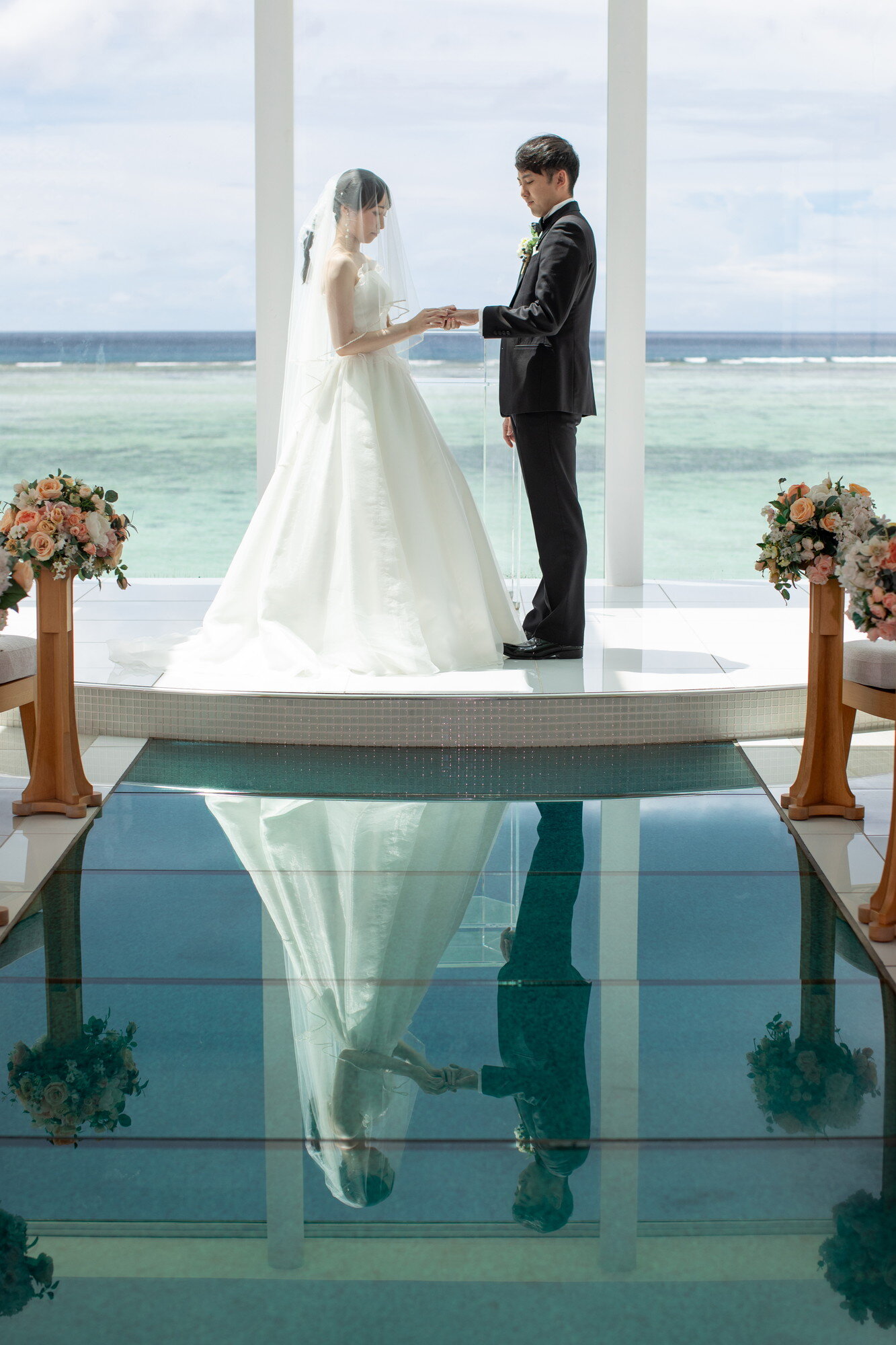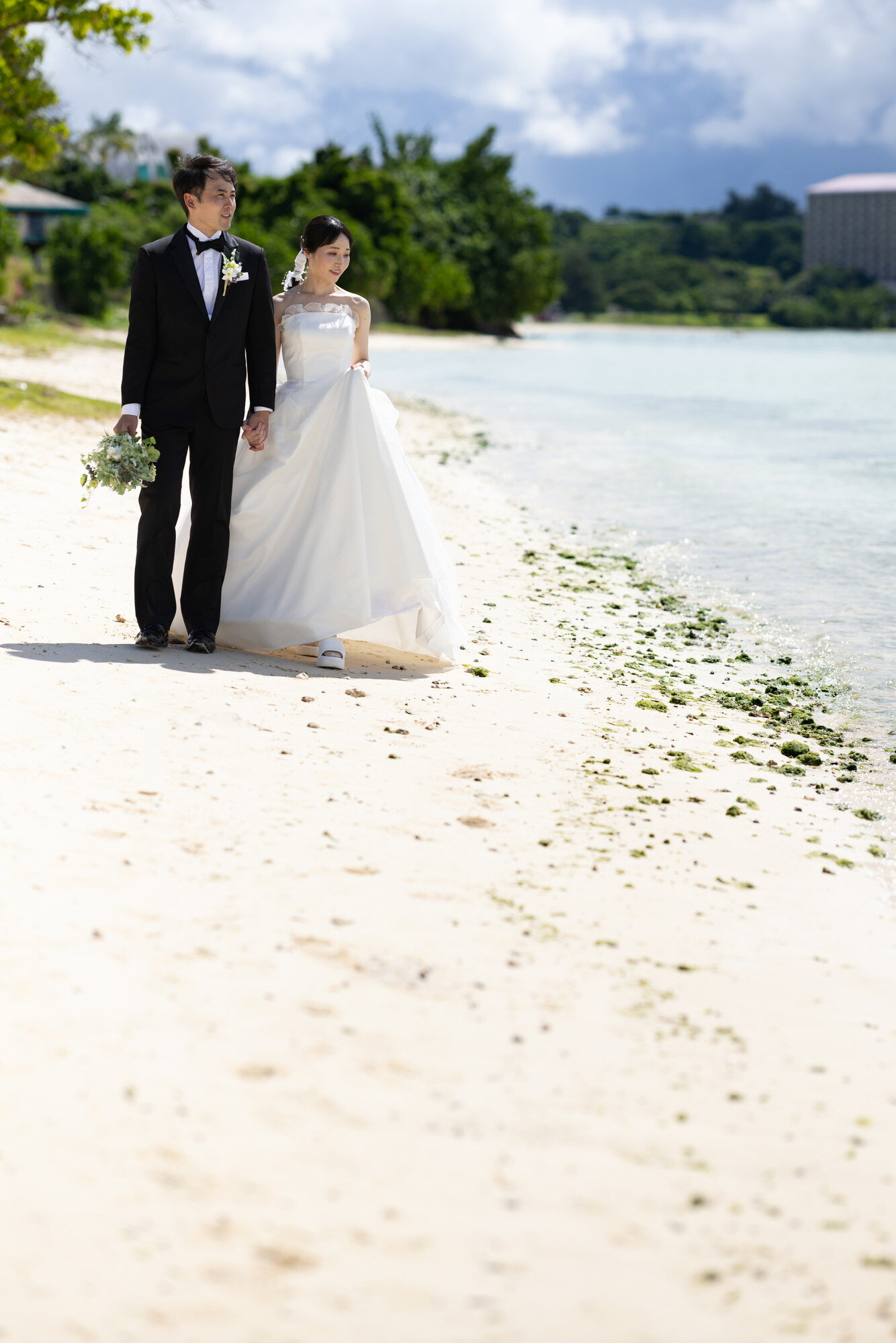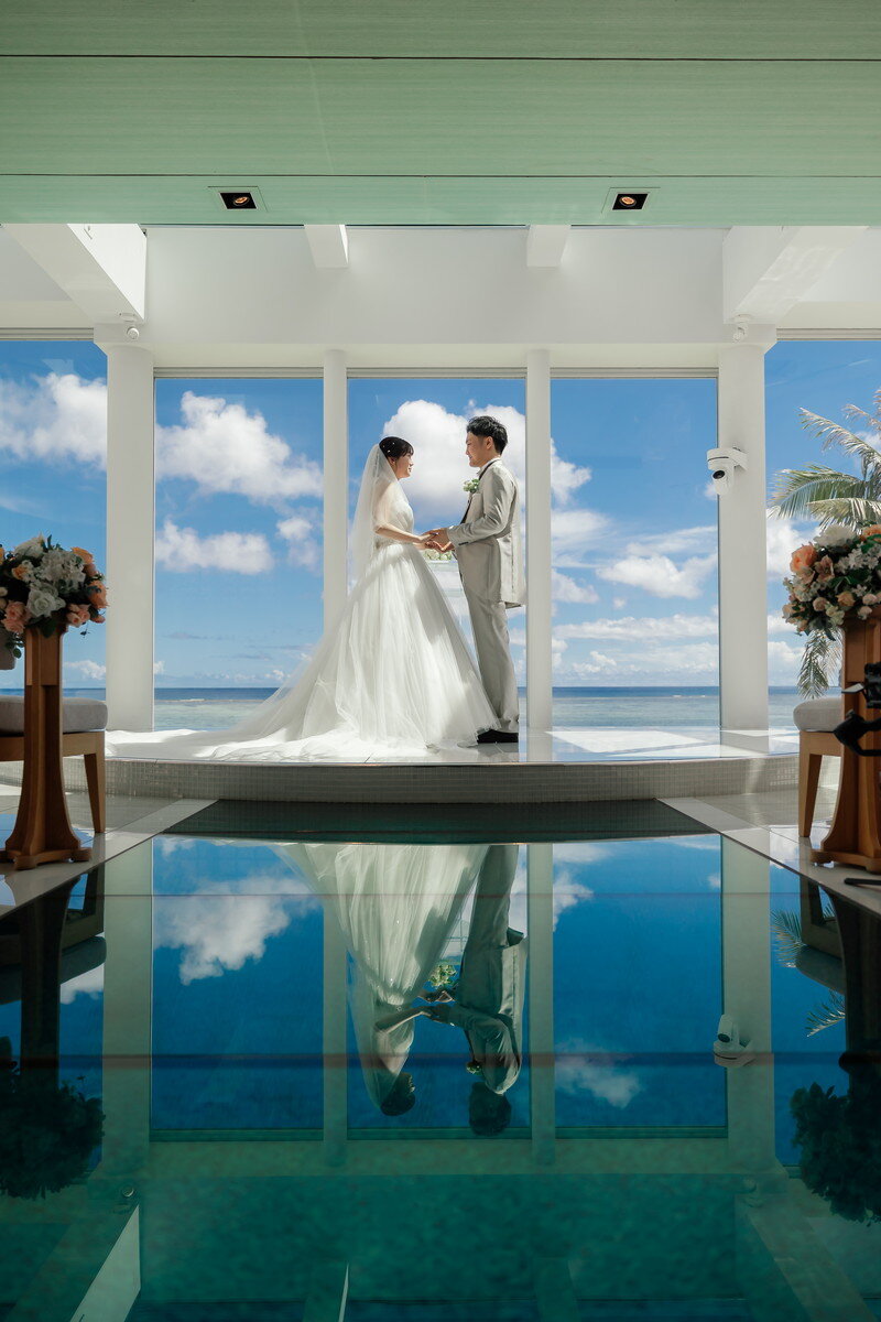 空と海を近く人感じながらのフォーマル撮影、透き通るほどの美しさに見惚れる海を背景にしたビーチ撮影、おしゃれなフォトスポットがあるガーデンでの撮影が叶います。写真のバリエーションも増えるのでお揃いのアイテムを用意してロケーション毎に雰囲気を変えた撮影を楽しむのもおすすめです。