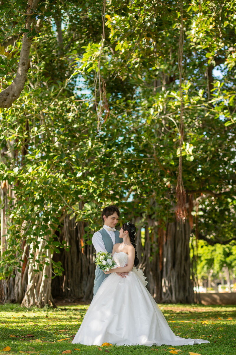 ハワイの美しいビーチでの撮影はもちろん、永遠に生きるバニアンツリーの木の下で多彩でバリエーション豊かな写真が残せます。いつ訪れても変わらない美しいロケーションは何度でも戻りたくなる特別な場所として思い出と共におふたりの心に刻まれること間違いなし。