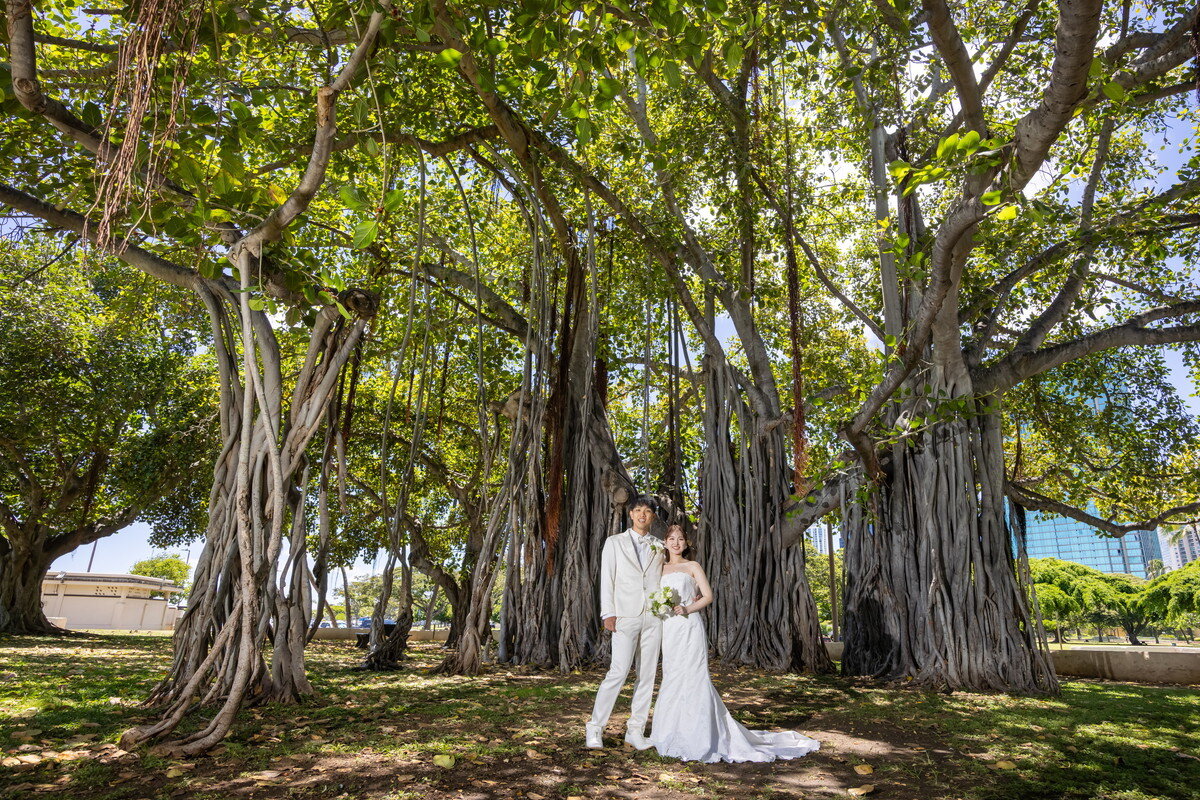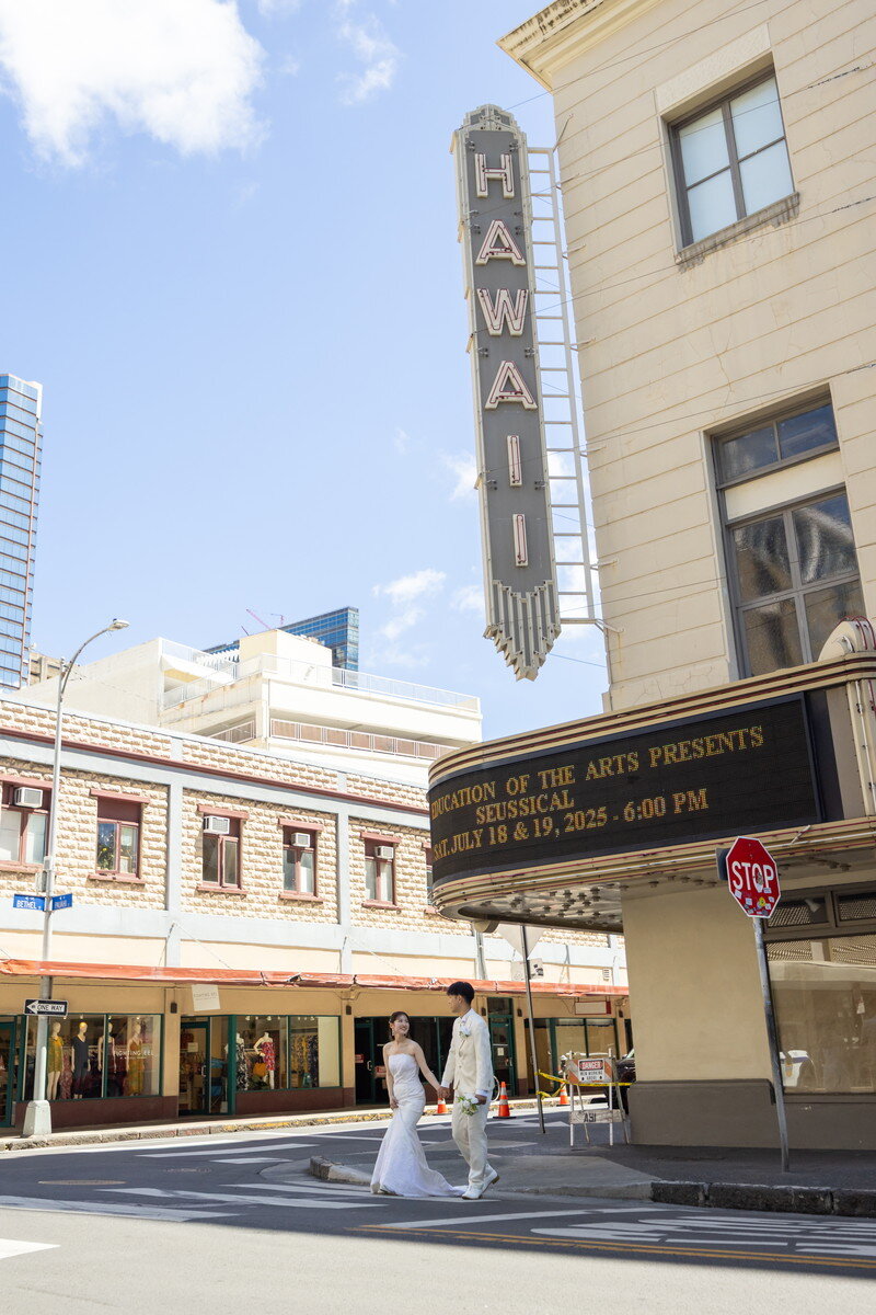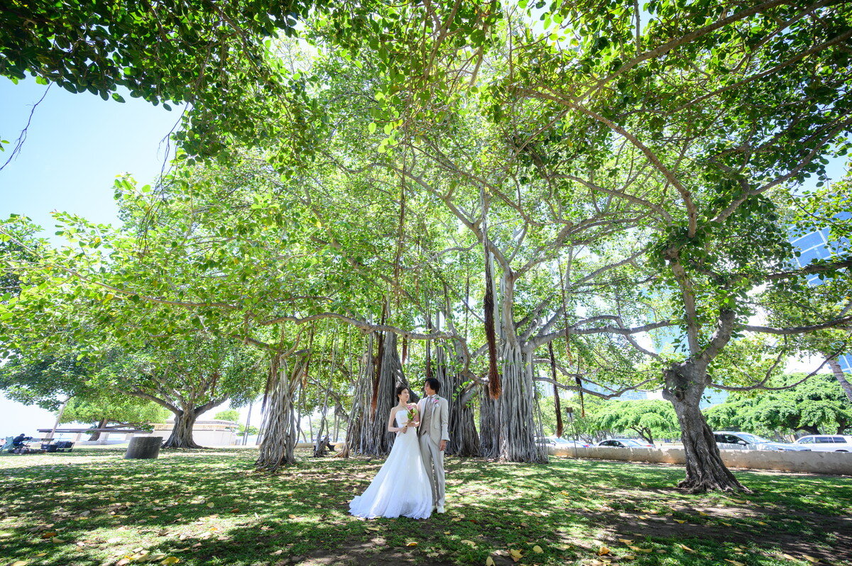 レトロな街並みが特徴的なダウンタウン。オールドハワイを感じることができる歴史的建造物やトレンド感あふれる建物など様々な文化がバランスよくMIXされた魅力溢れる撮影スポットです。映画のワンシーンのようなお写真、SNS映えするようなおしゃれなお写真など、おふたりらしい撮影をお楽しみいただけます。また、ハワイの歴史を語るには欠かせない美しいビーチロケーションでの撮影ではリゾート感溢れる<白い砂浜・青い海>がおふたりを包み込みます。