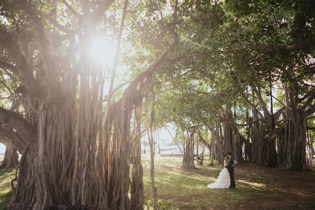 ダイヤモンドヘッドを遠くに望みながら、どこまでも続く水平線と広々とした芝生が迎えてくれるアラモアナビーチ&パークでもっと笑顔に溢れた撮影を。洗練された都会のスカイラインを背景に、ラヴィファクトリーのプロフォトグラファーがおふたりの様々な表情を残します。