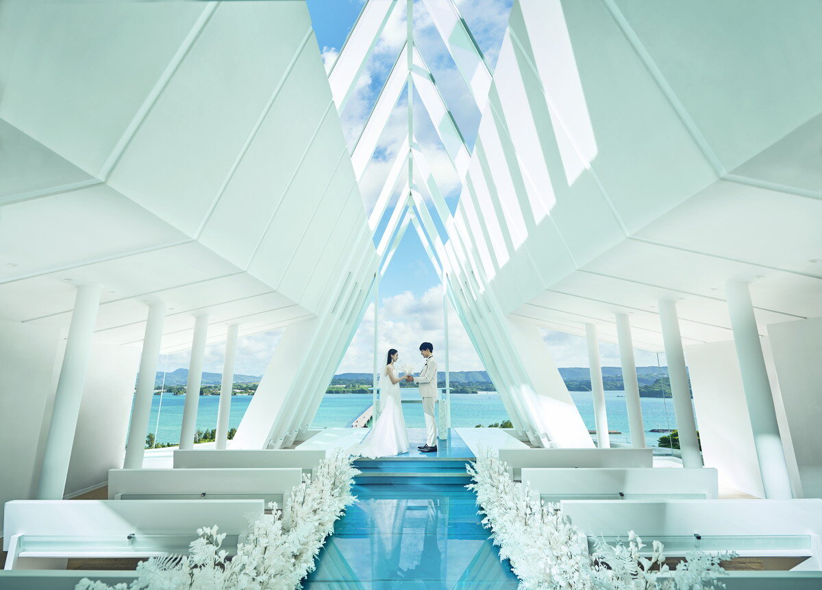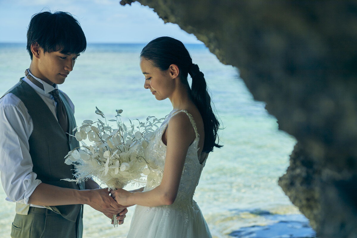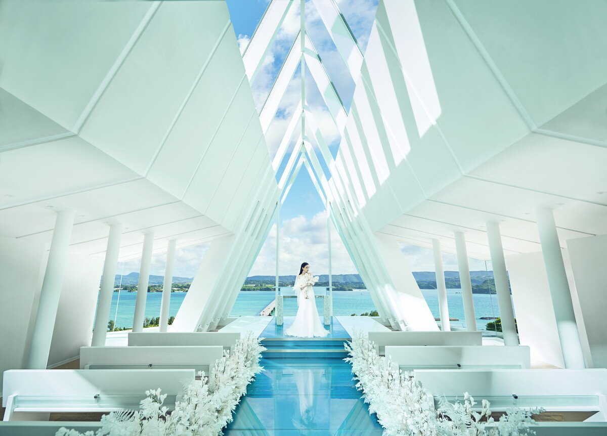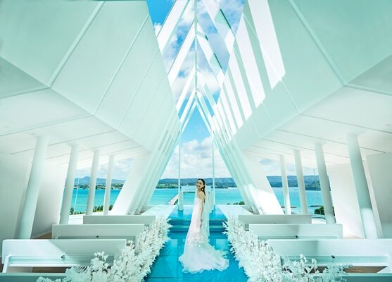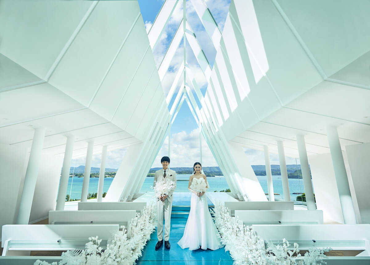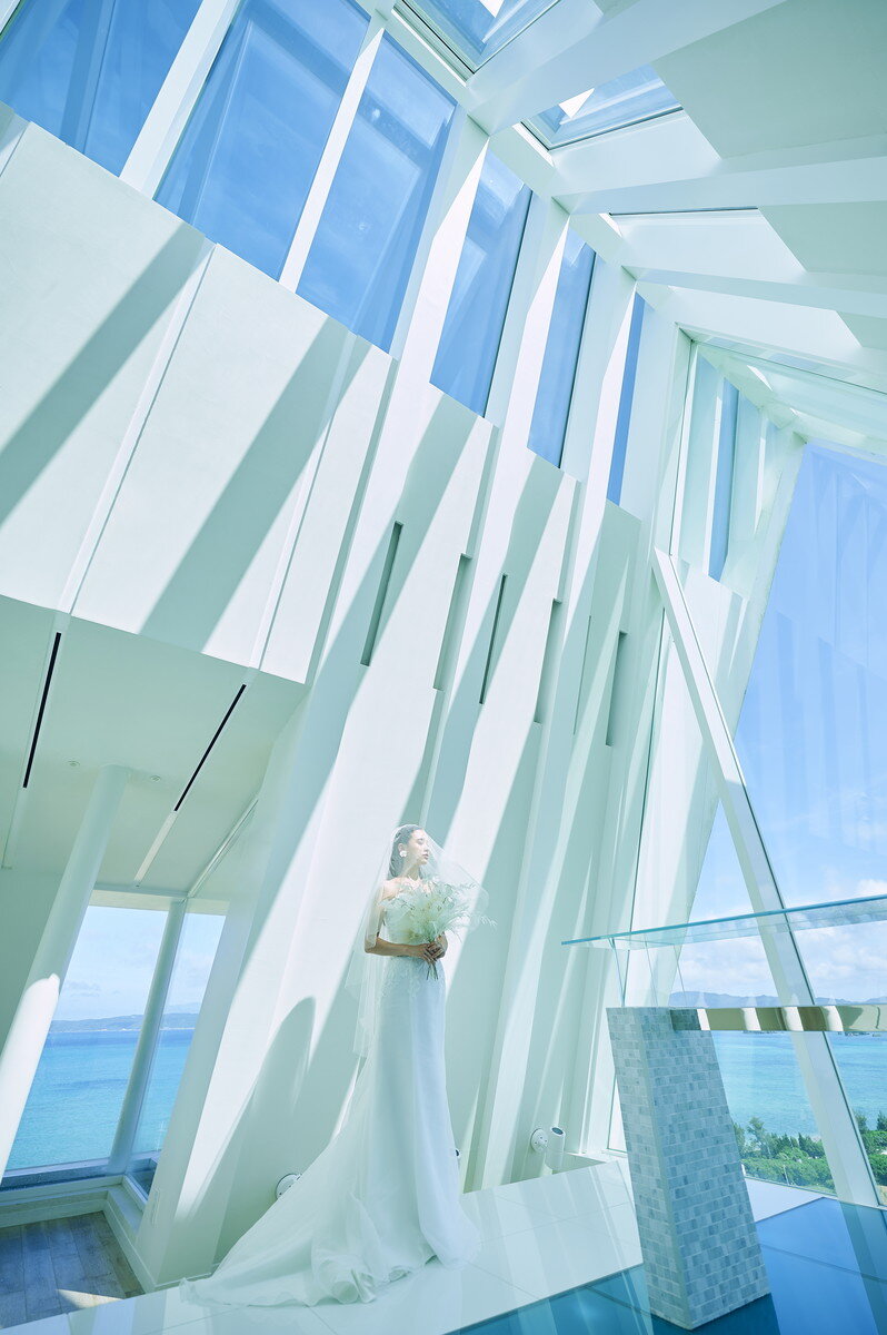 沖縄の海を望むチャペルでのフォトウェディングに、