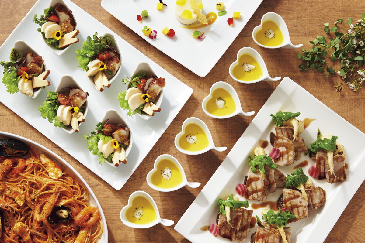 古宇利島近海食材や沖縄北部産食材を生かしたお料理を自由に取り分けて楽しめるスタイルフリードリンク詳細 ※すべてノンアルコール