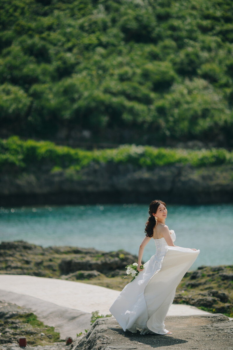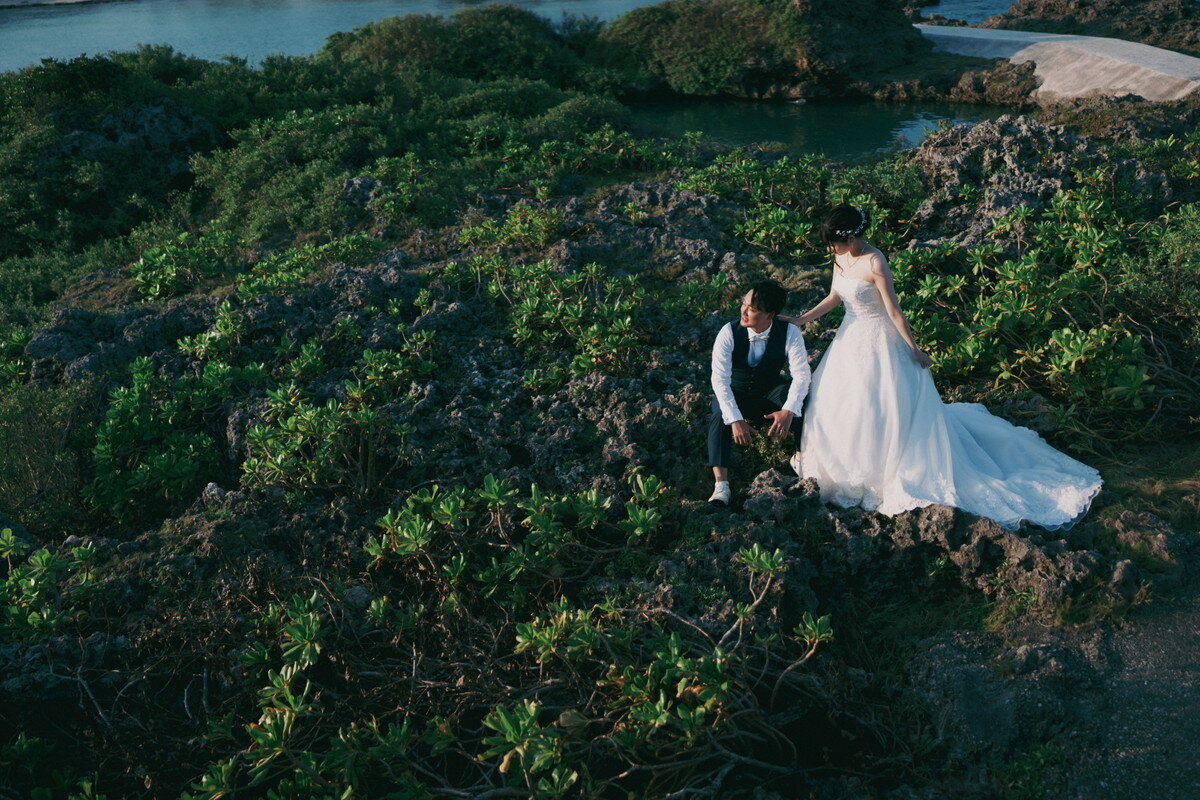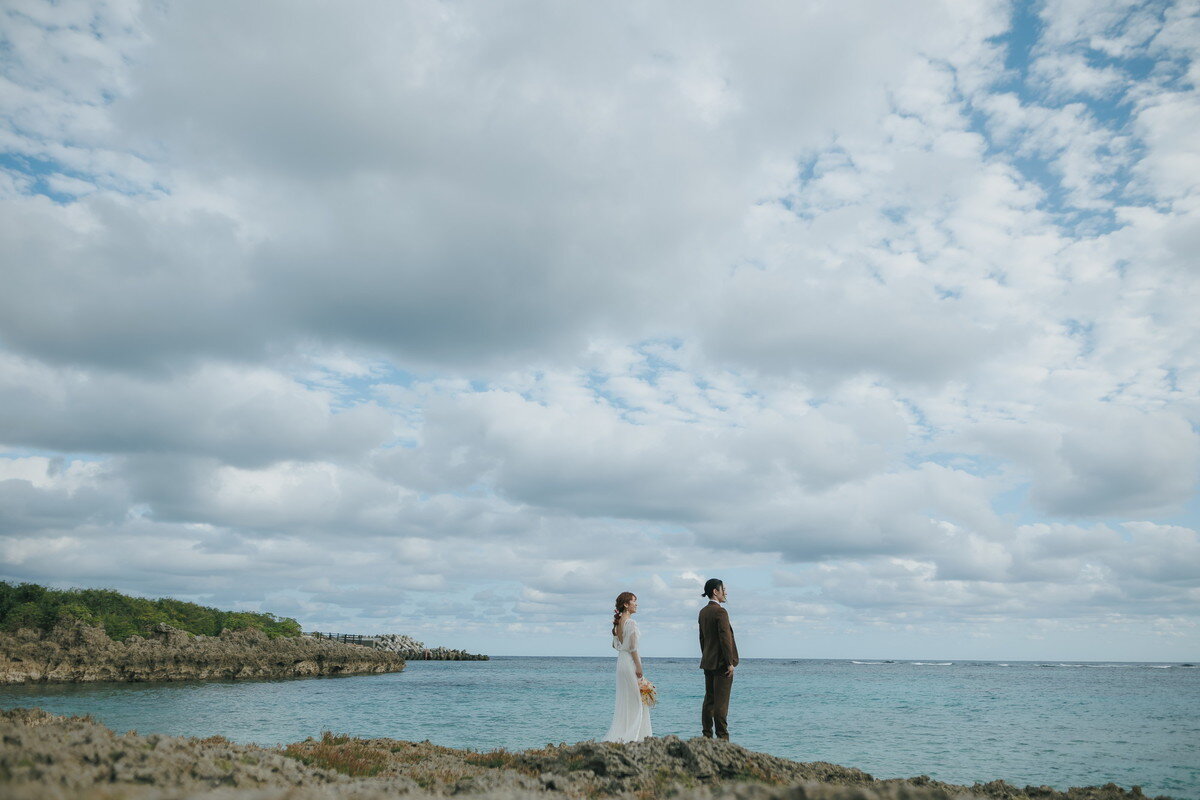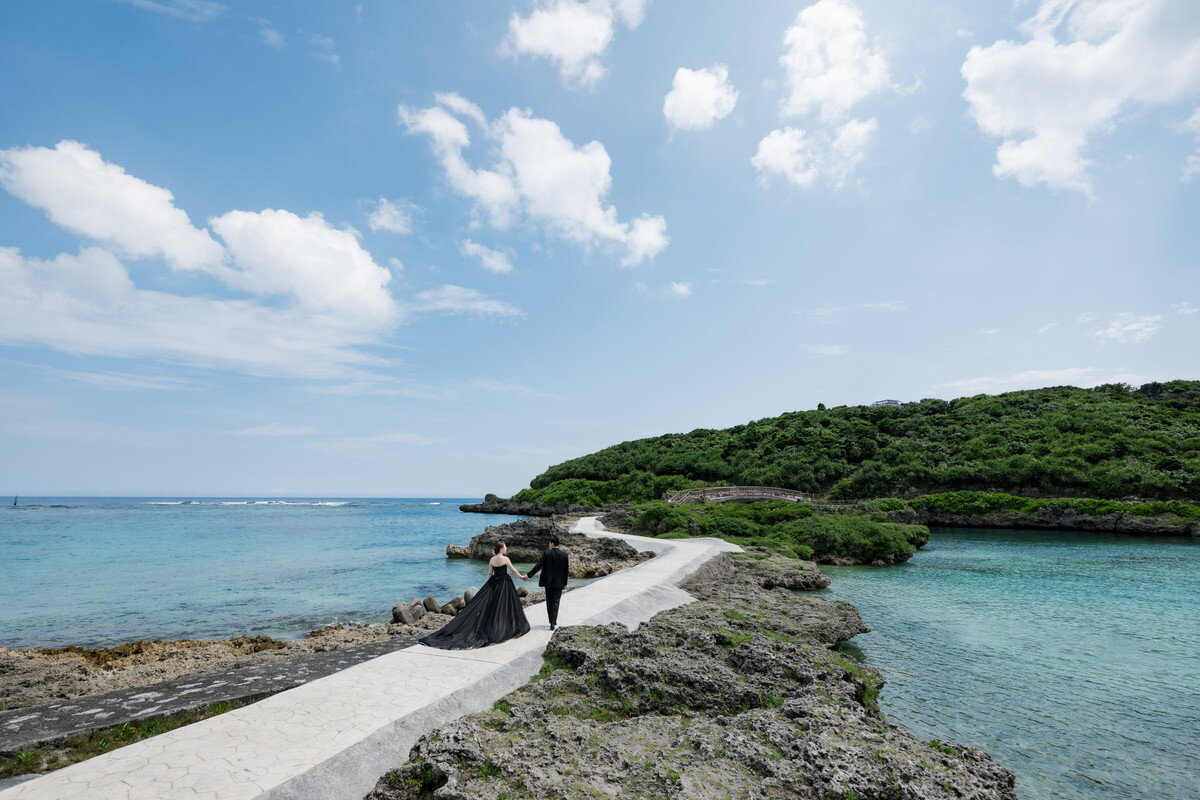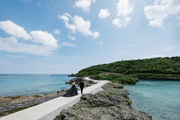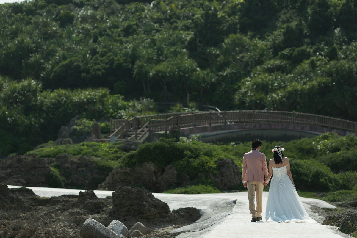 宮古島でも指折りの透明度を誇る イムギャーマリンガーデン。穏やかな入り江に差し込む光、どこまでも澄んだ青、静かに流れる南国の空気——。自然そのままの美しさに包まれながら、ふたりらしい “等身大の美しさ” を残せるロケーションです。海に寄り添う時間を、そのまま写真に。