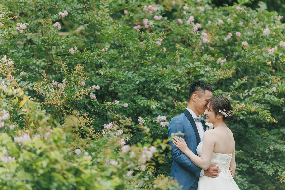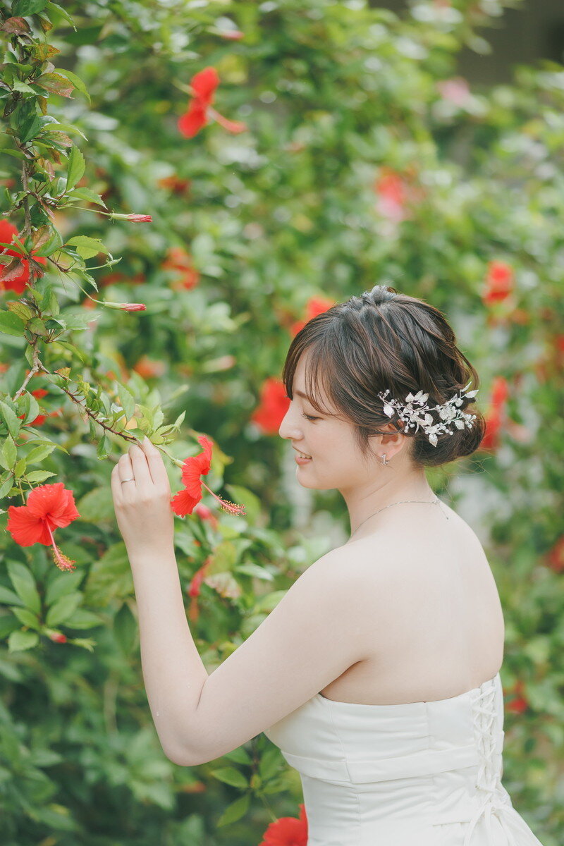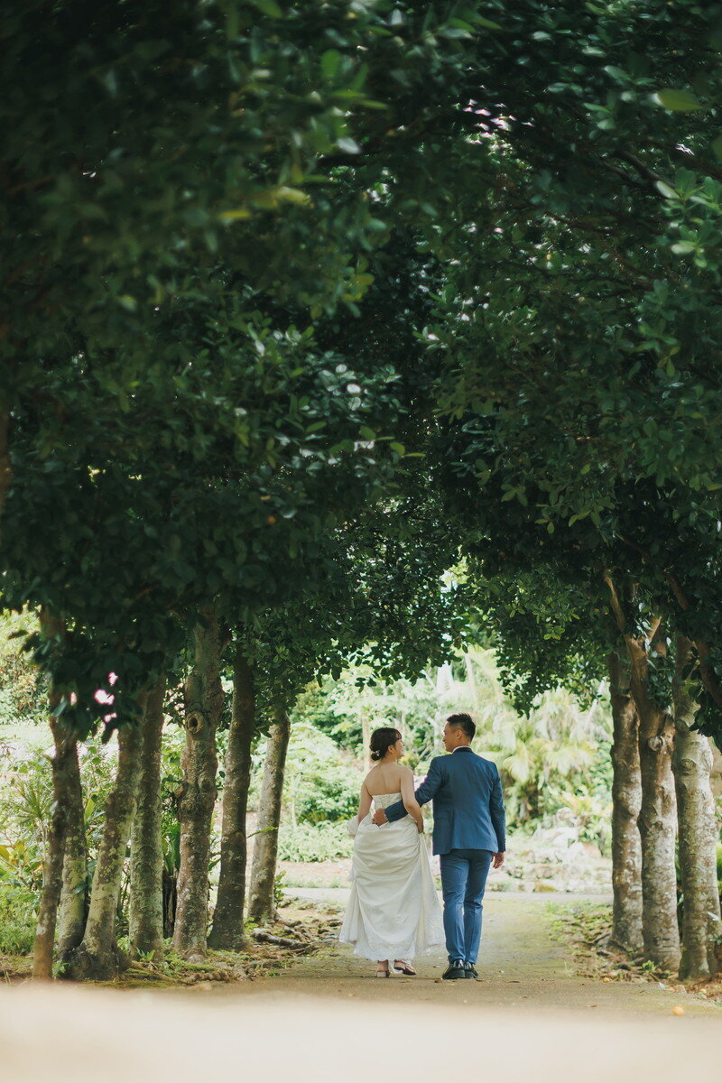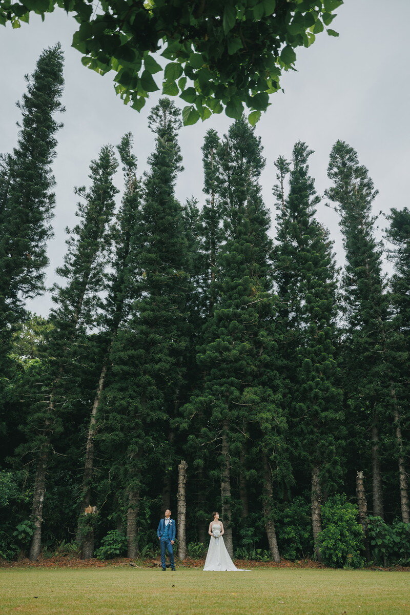 宮古島の静かな森に広がる 熱帯植物園。濃く鮮やかな緑、個性豊かな熱帯植物、木漏れ日が揺れる明るい散策路――。ここに流れるゆったりとした空気は、まるで自然に抱きしめられているよう。海とはまた違う、植物に満ちた豊かな表情が、ふたりのフォトウエディングに優しい彩りを添えます。
