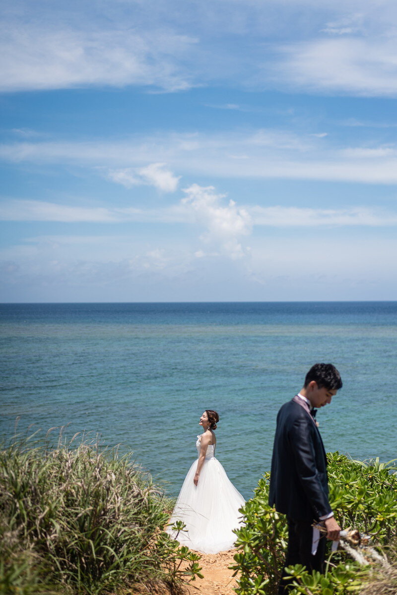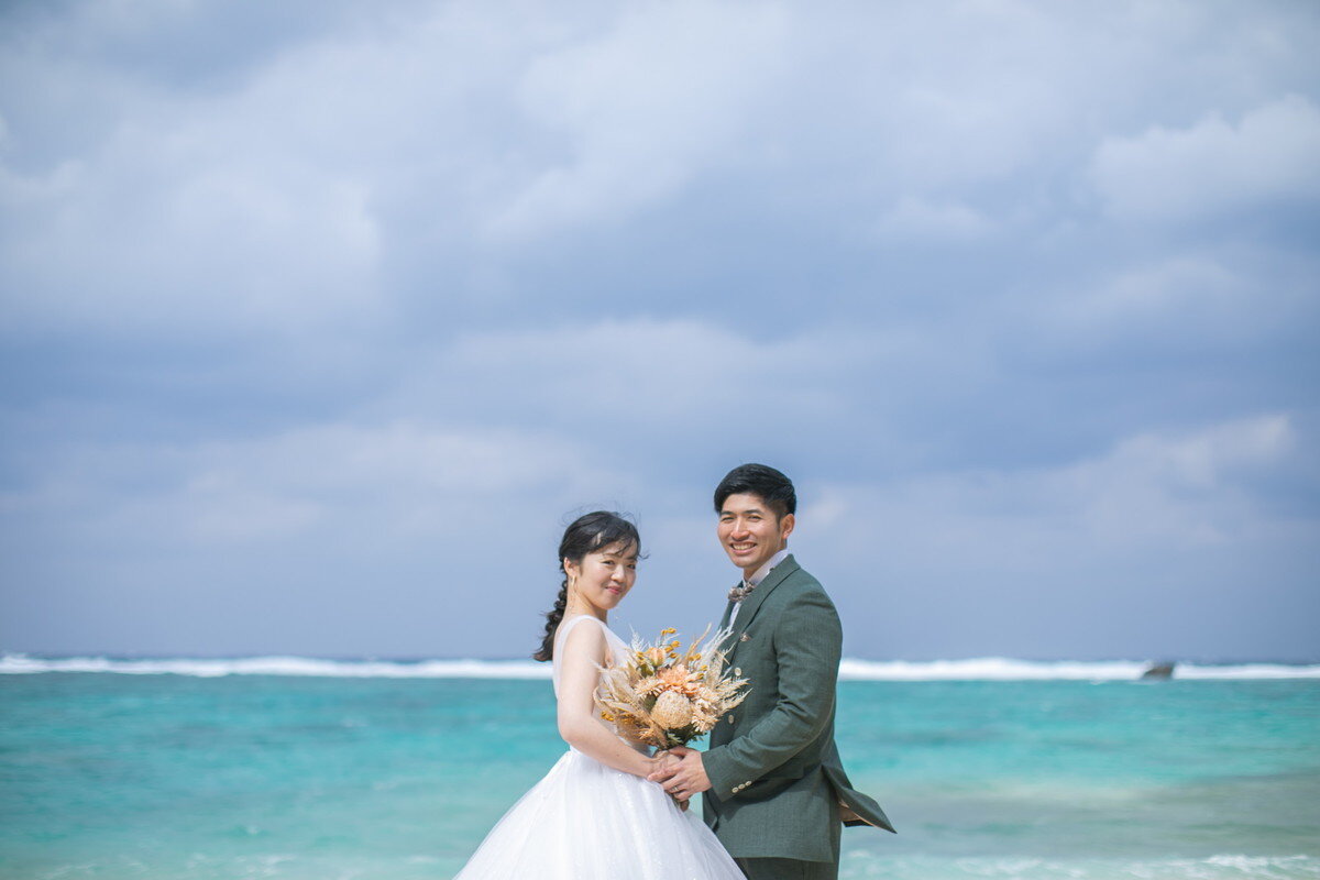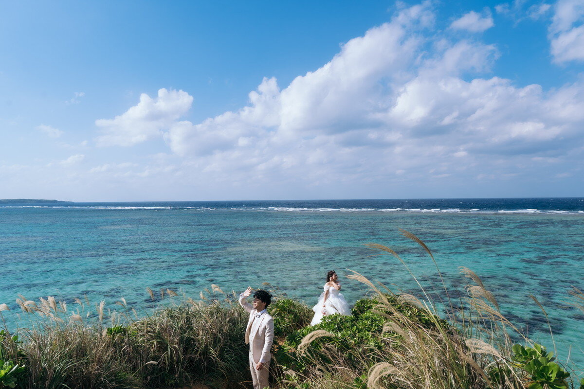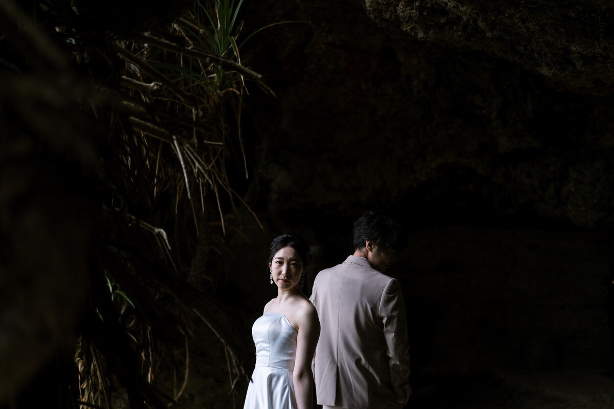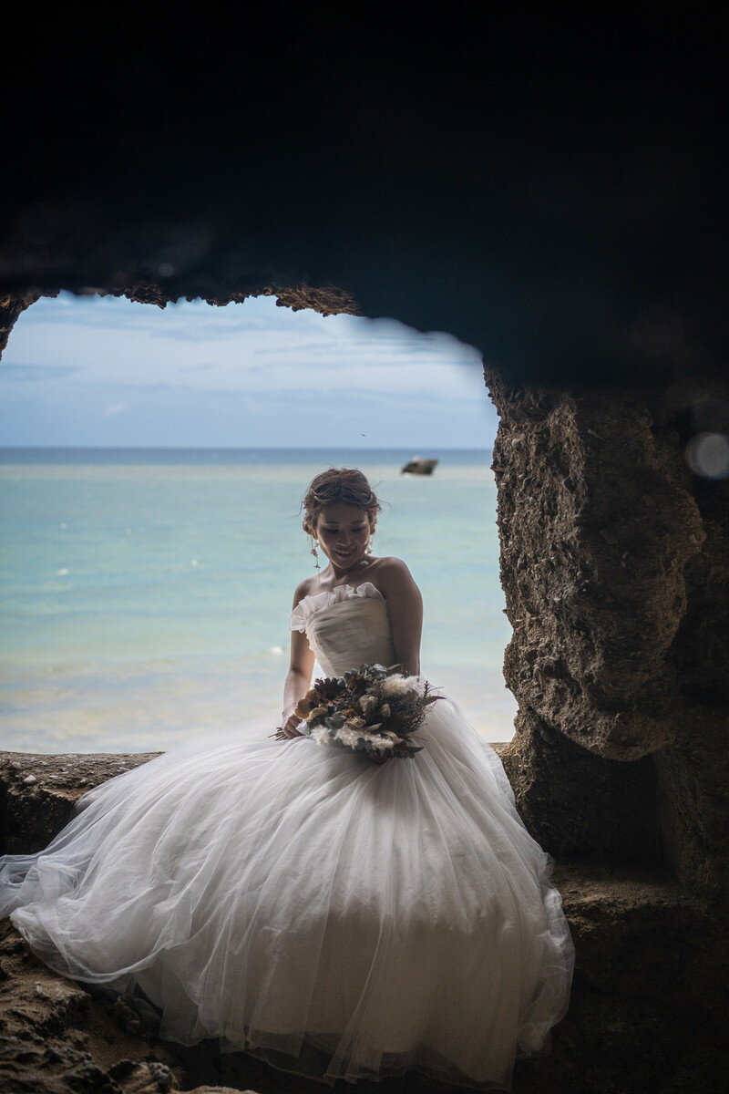 沖縄本島でも数少ない、手つかずの自然が美しく残る ザネー浜。優しい波音だけが響く静かな浜辺は、まるで時がゆっくりと流れるような場所。透明感のある海とダイナミックな岩壁、素朴で力強い自然が、ふたりの瞬間をより深く印象的に映し出します。