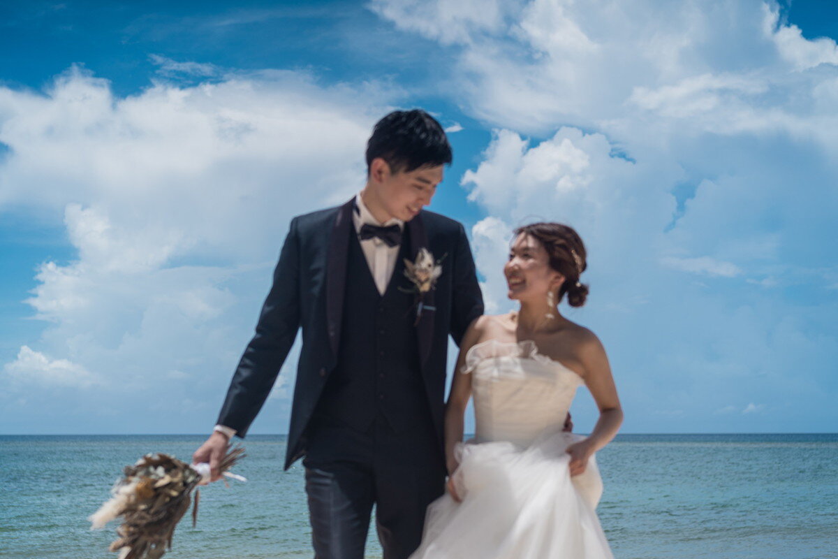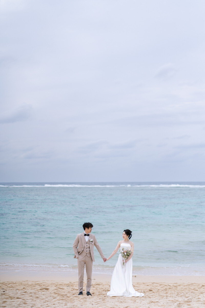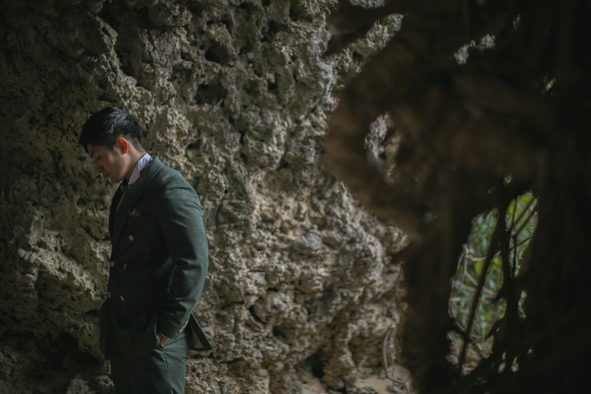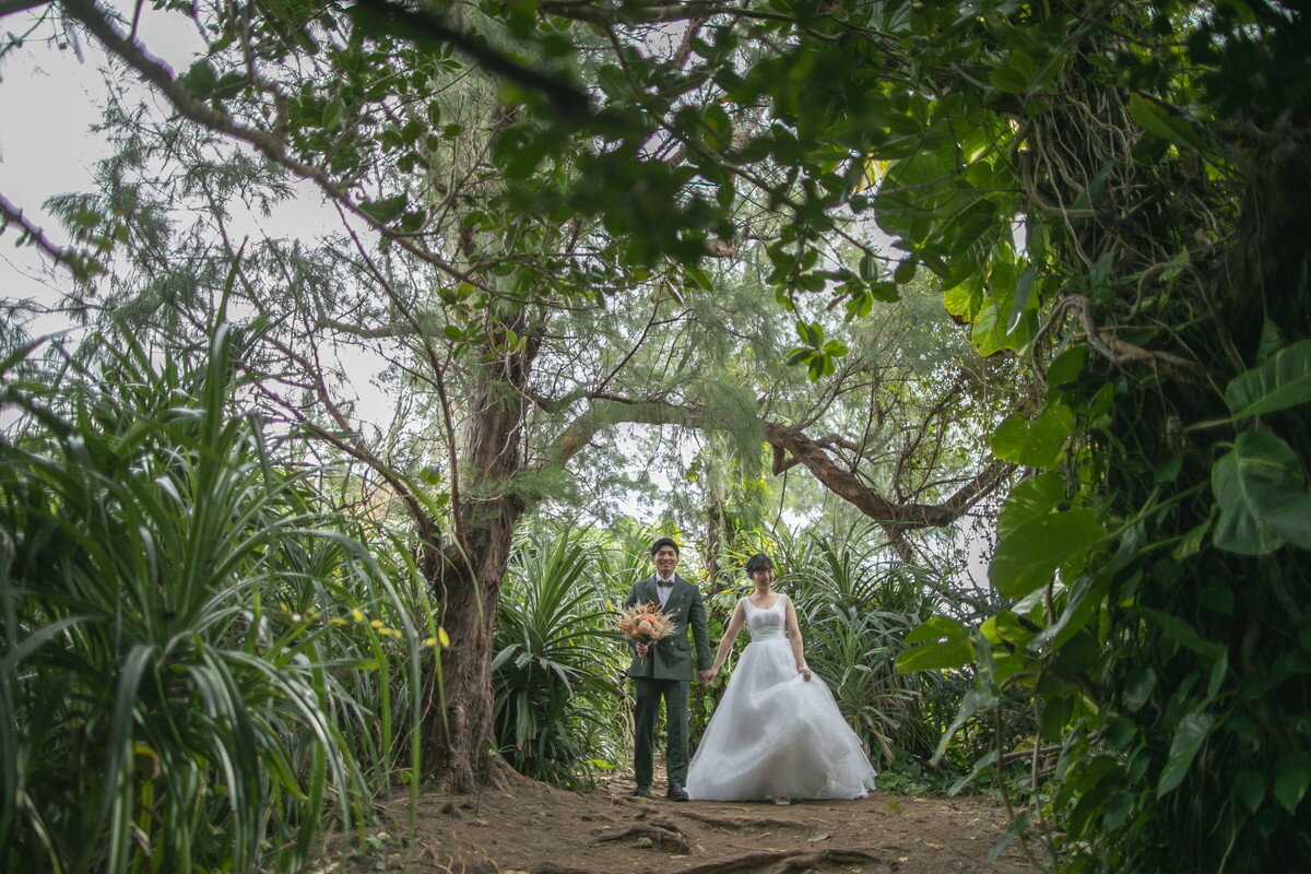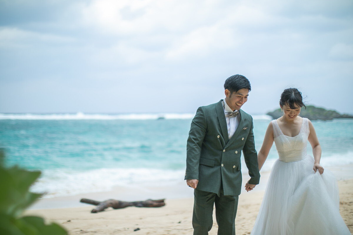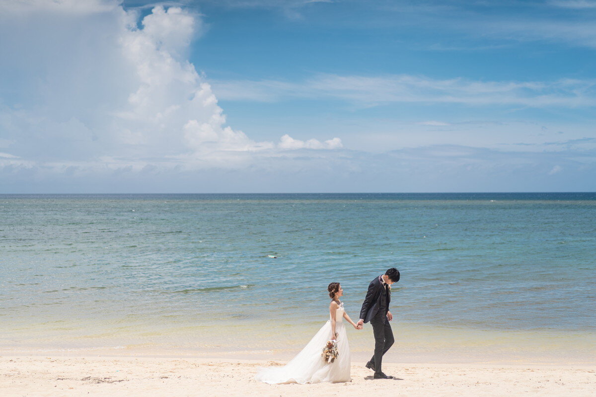 沖縄本島でも数少ない、手つかずの自然が美しく残る ザネー浜。優しい波音だけが響く静かな浜辺は、まるで時がゆっくりと流れるような場所。透明感のある海とダイナミックな岩壁、素朴で力強い自然が、ふたりの瞬間をより深く印象的に映し出します。