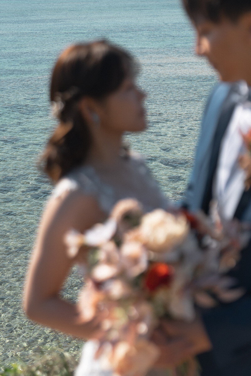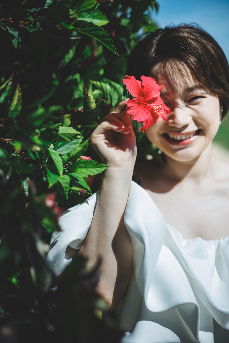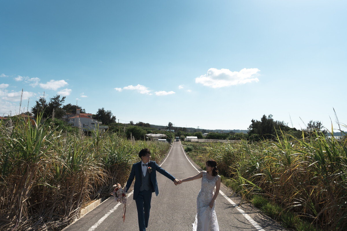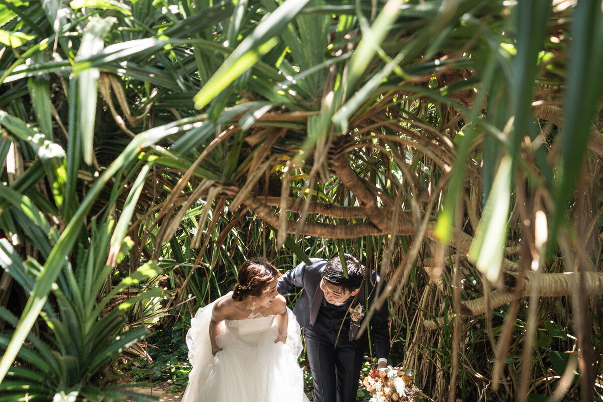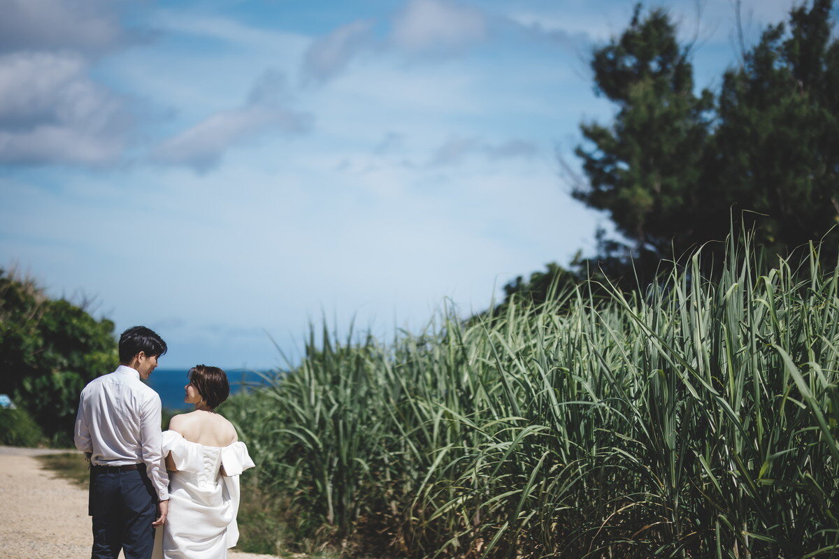沖縄本島でも数少ない、手つかずの自然が美しく残る ザネー浜。優しい波音だけが響く静かな浜辺は、まるで時がゆっくりと流れるような場所。透明感のある海とダイナミックな岩壁、素朴で力強い自然が、ふたりの瞬間をより深く印象的に映し出します。