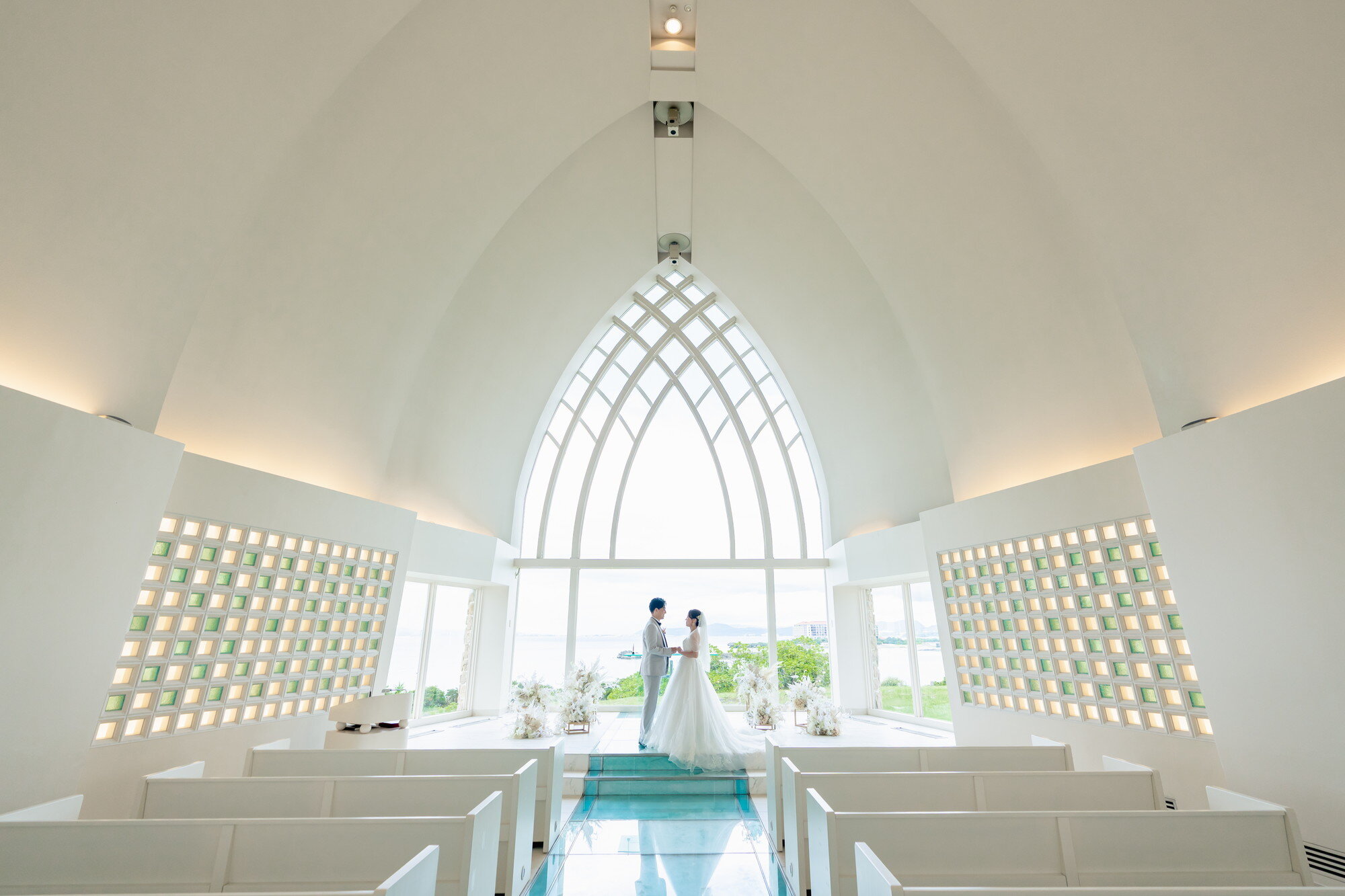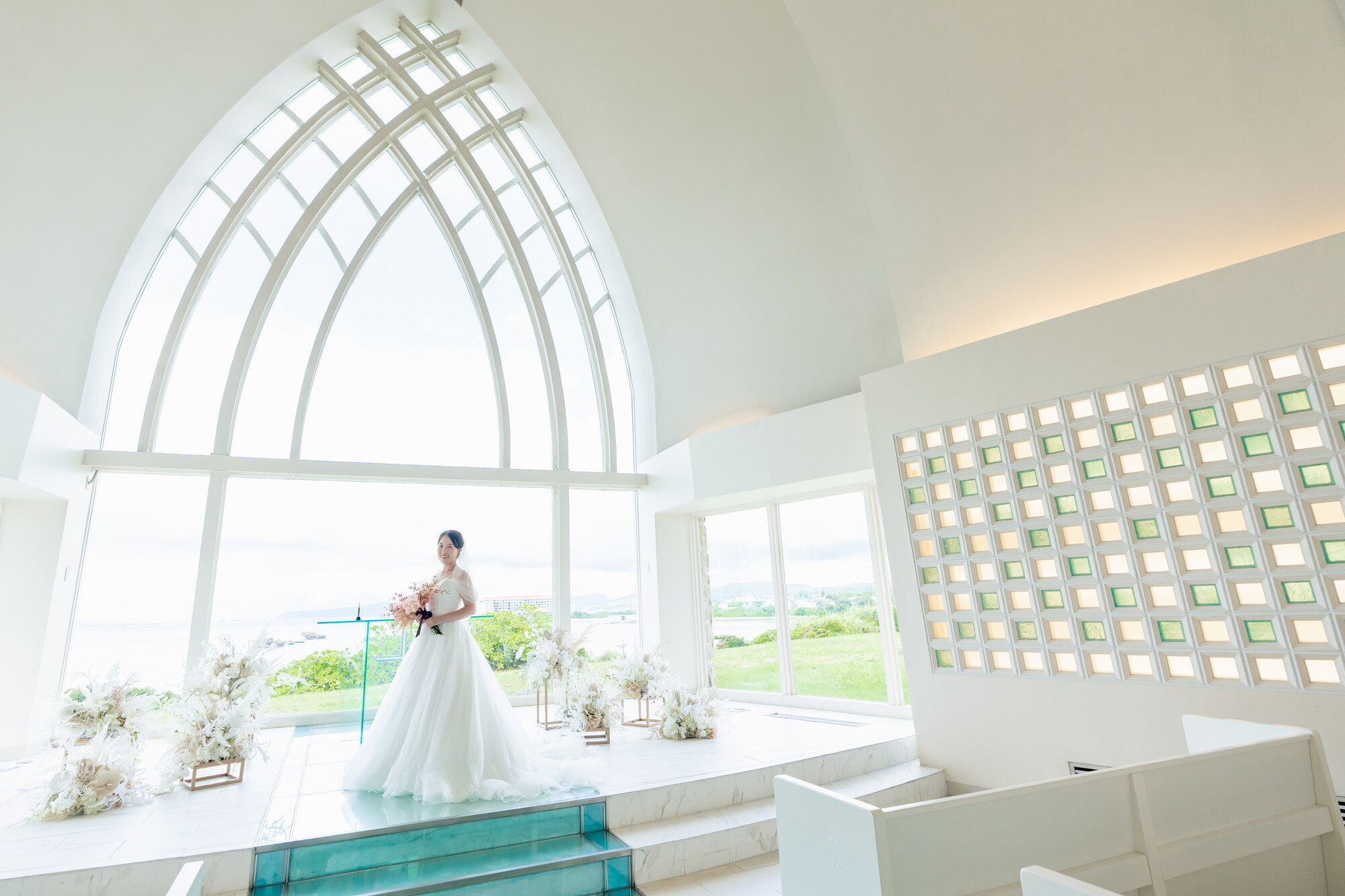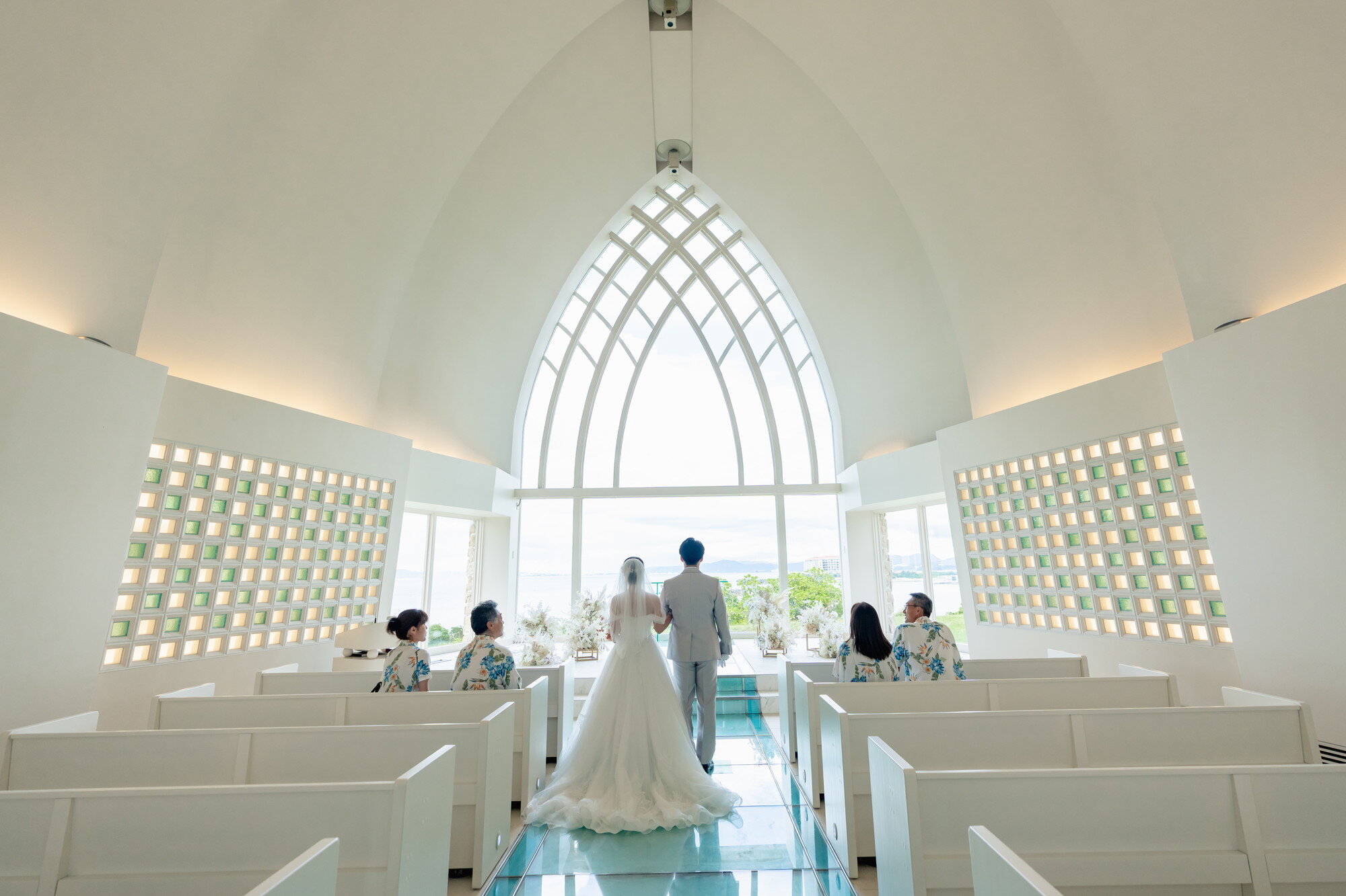 白亜のチャペルと輝く海、すべてが絵になる瞬間