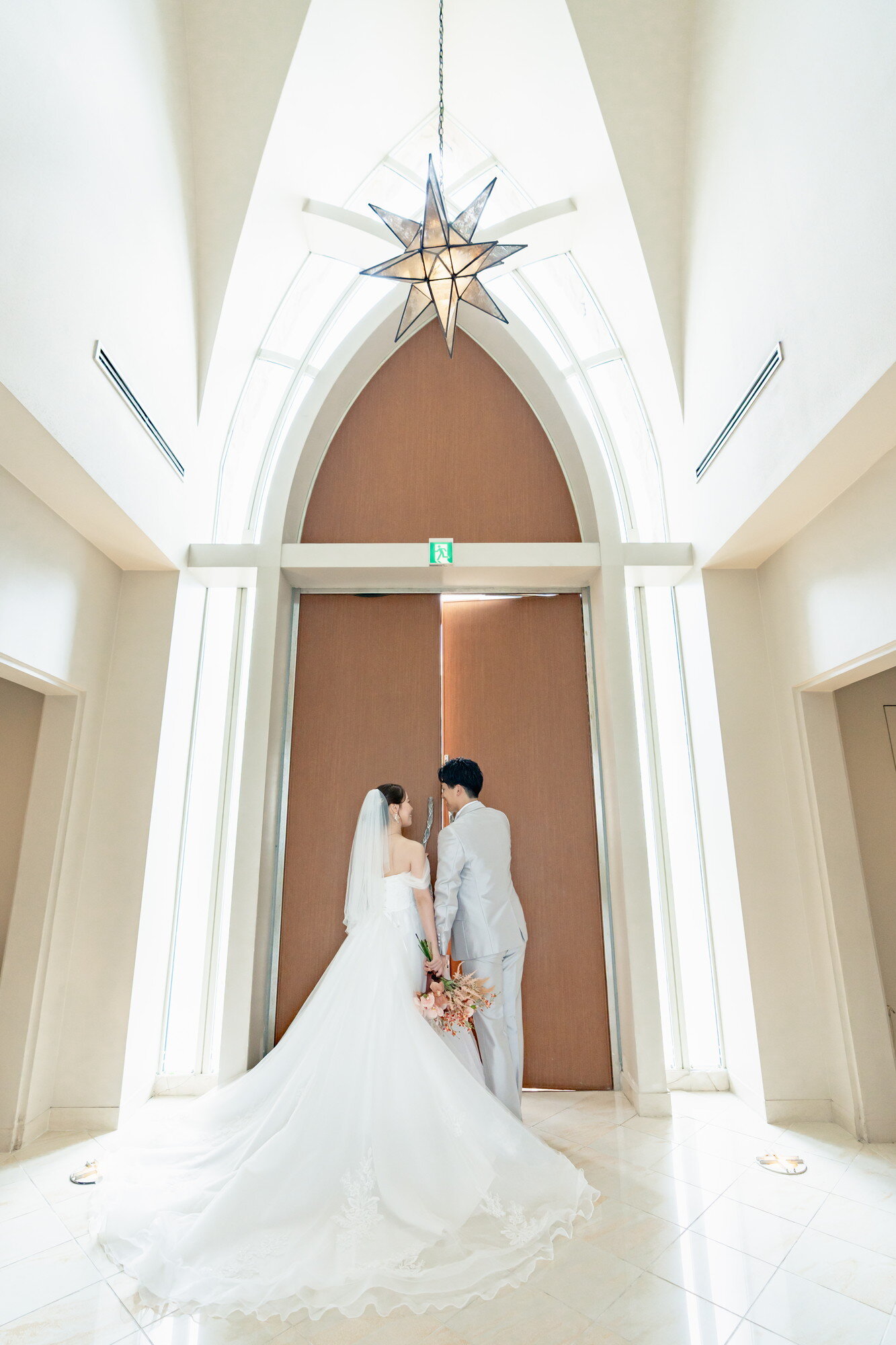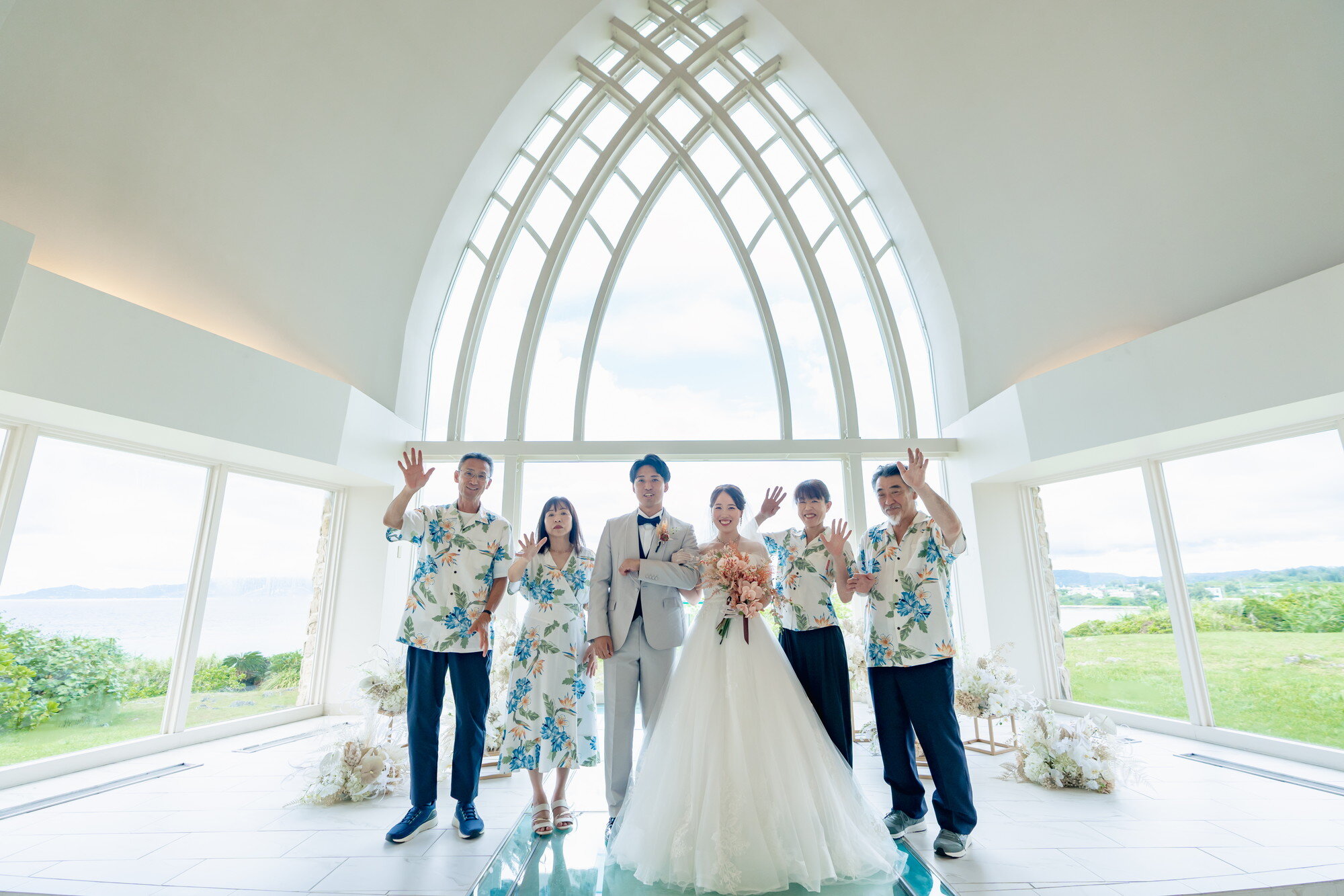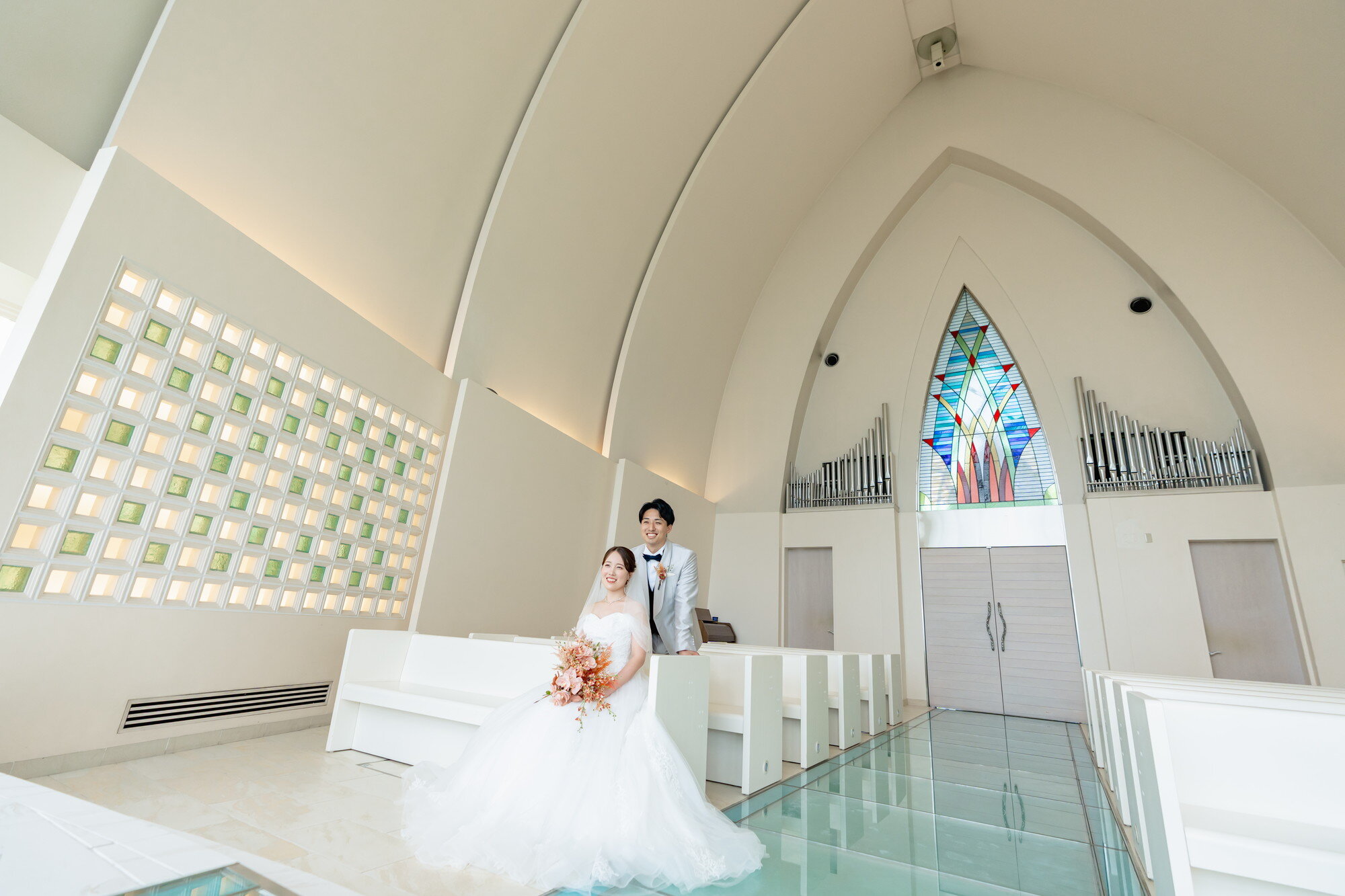 白亜のチャペルと輝く海、すべてが絵になる瞬間