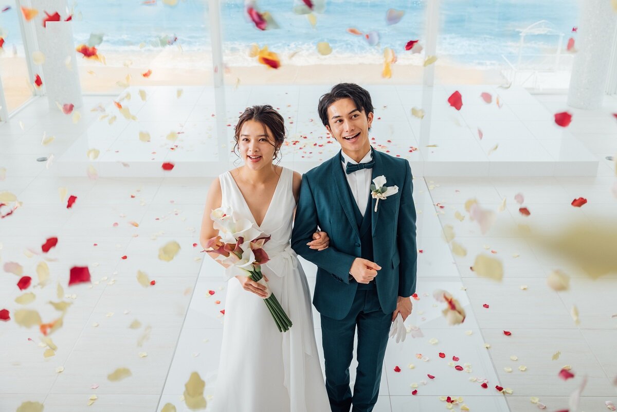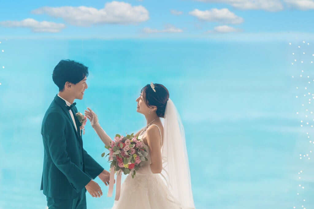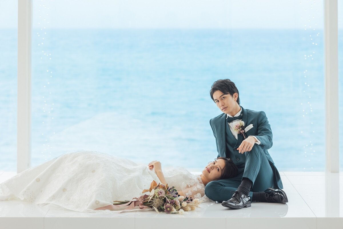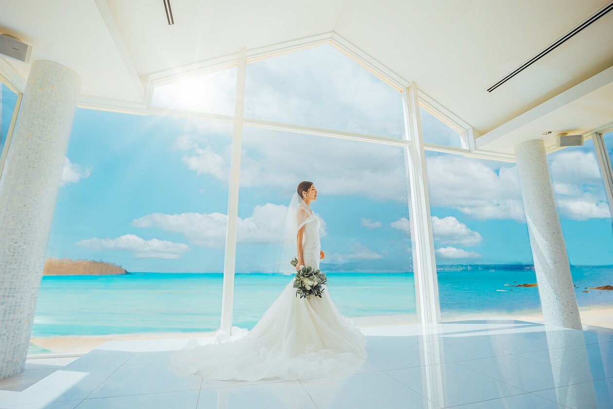 ”海の宝石”という名の通り祭壇からはオーシャンフロントの絶景が広がり、シャンデリアの輝きがまるで宝石のような輝きを放つチャペルでのフォーマル撮影と県内でも美しさで有名な喜瀬ビーチでの撮影が叶うプランです。思わず笑みがこぼれるようなロケーションで、幸せの笑顔に満ちた写真をたくさん残したいおふたりにおすすめです。
