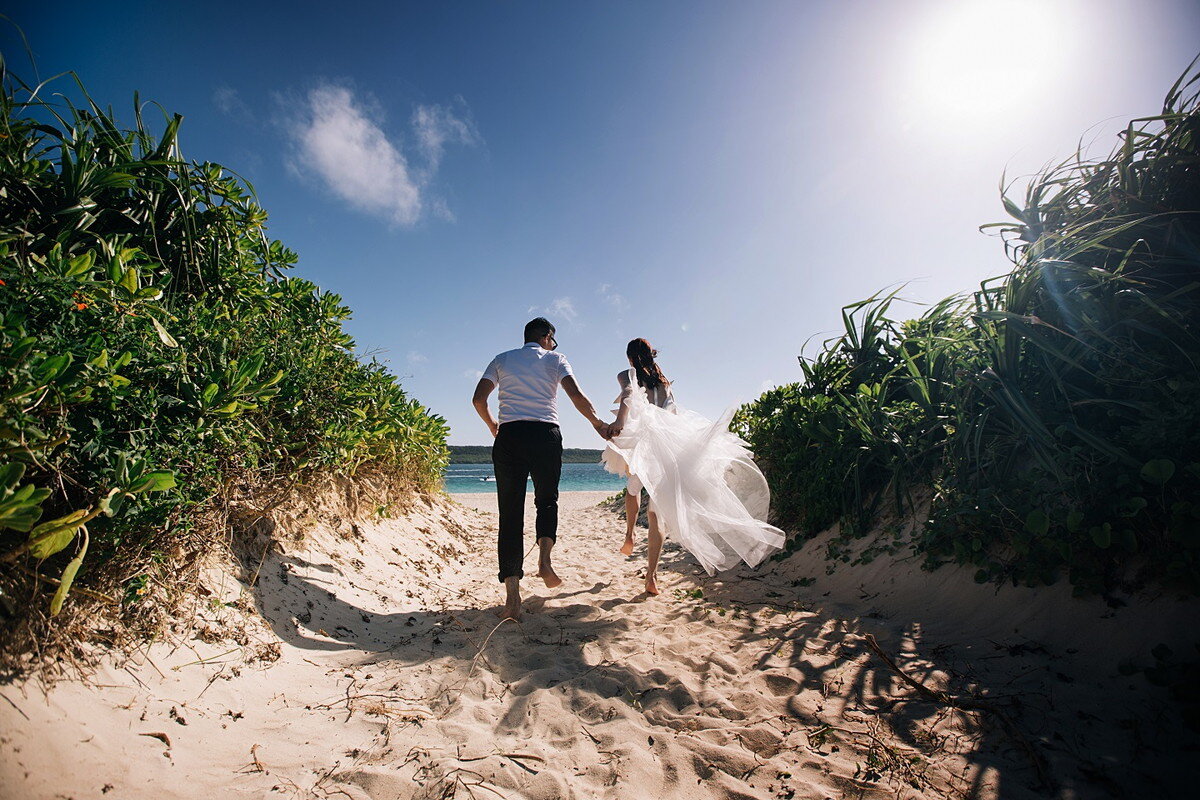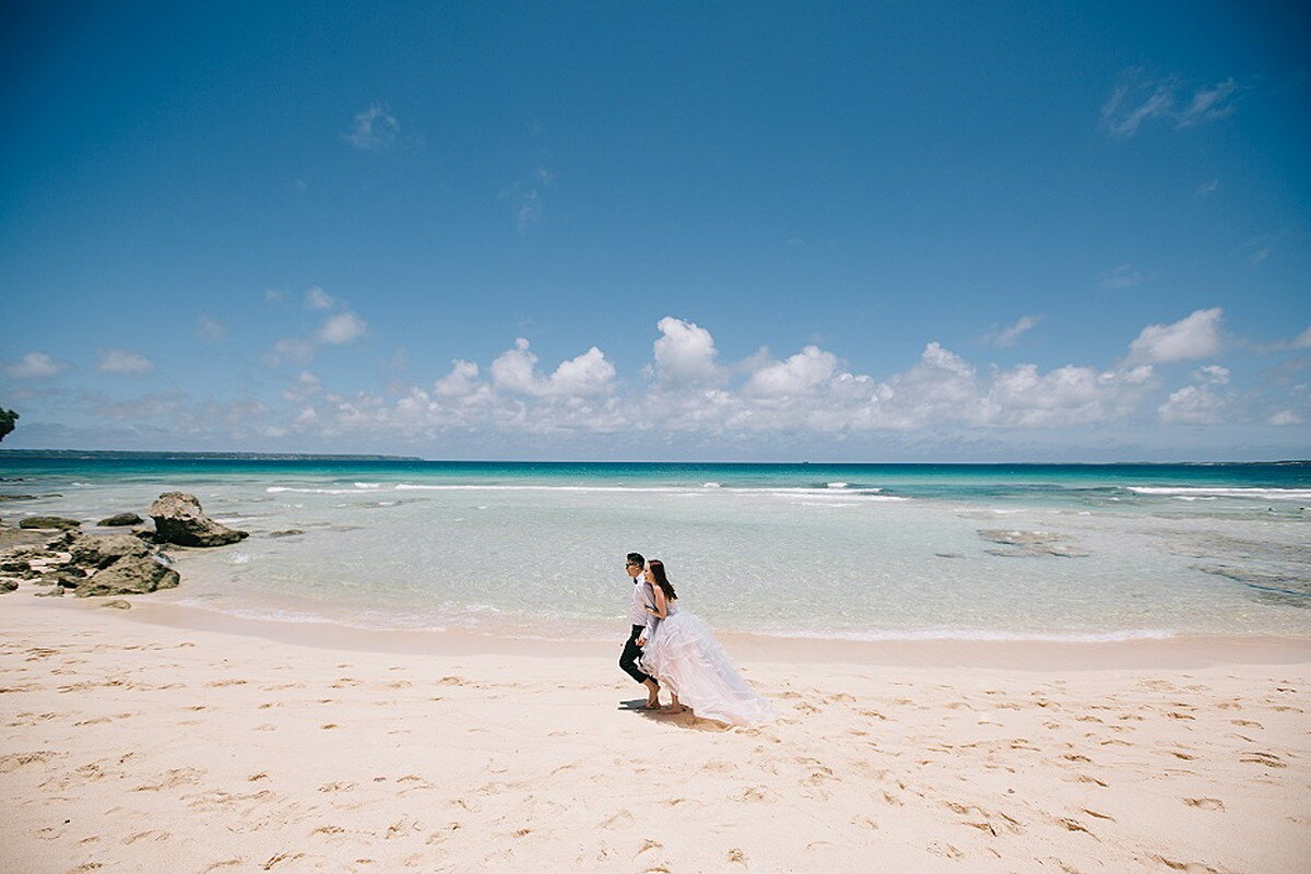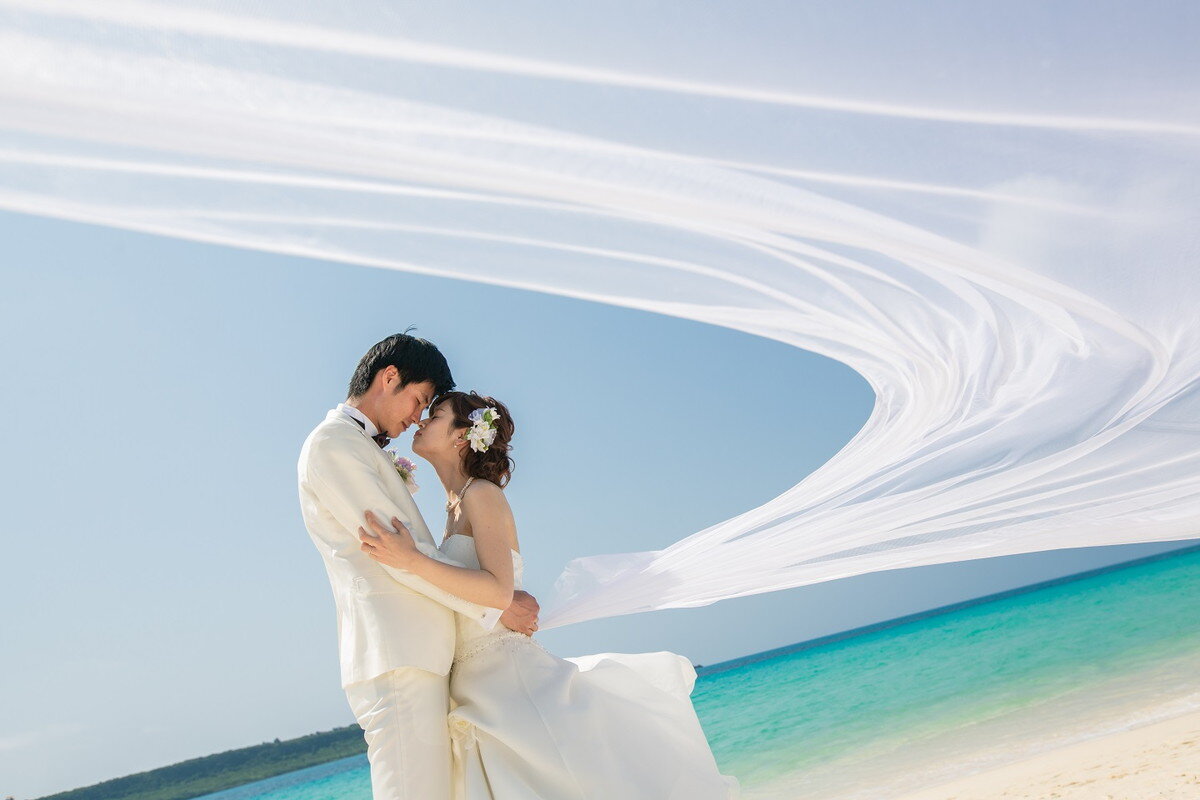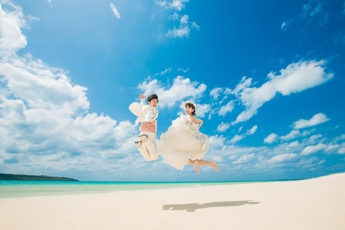 宮古ブルーを背景に非日常的なウェディングフォトを