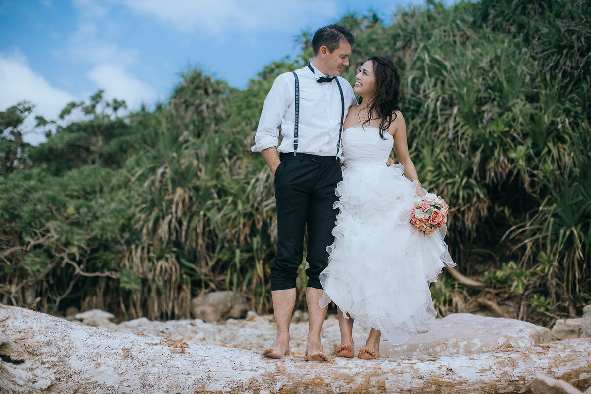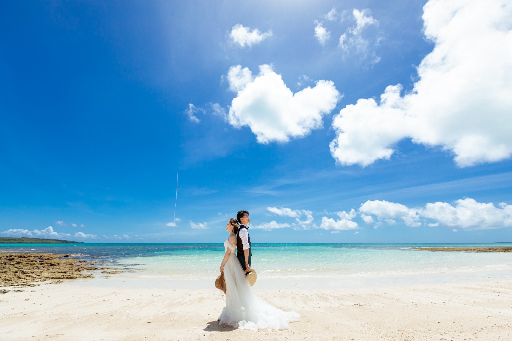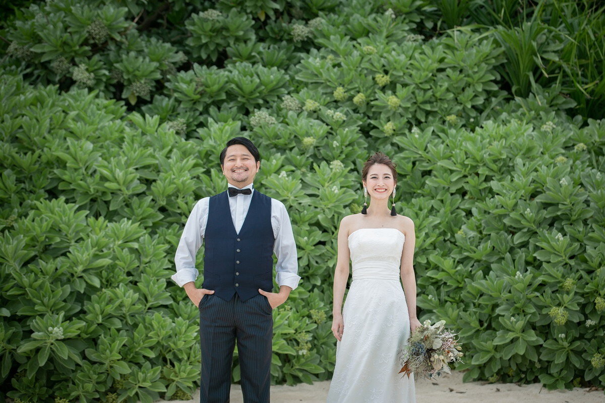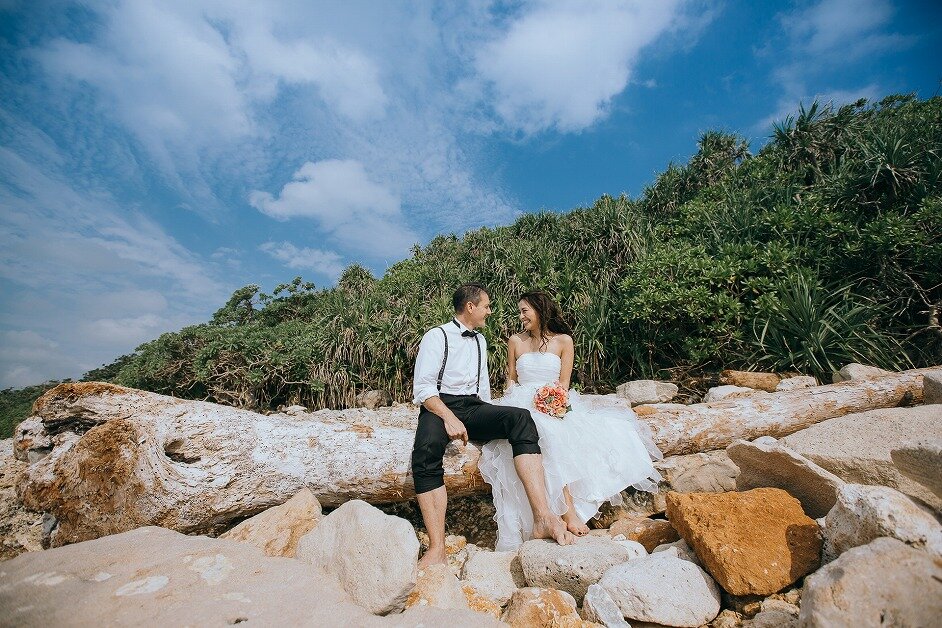 宮古ブルーを背景に非日常的なウェディングフォトを