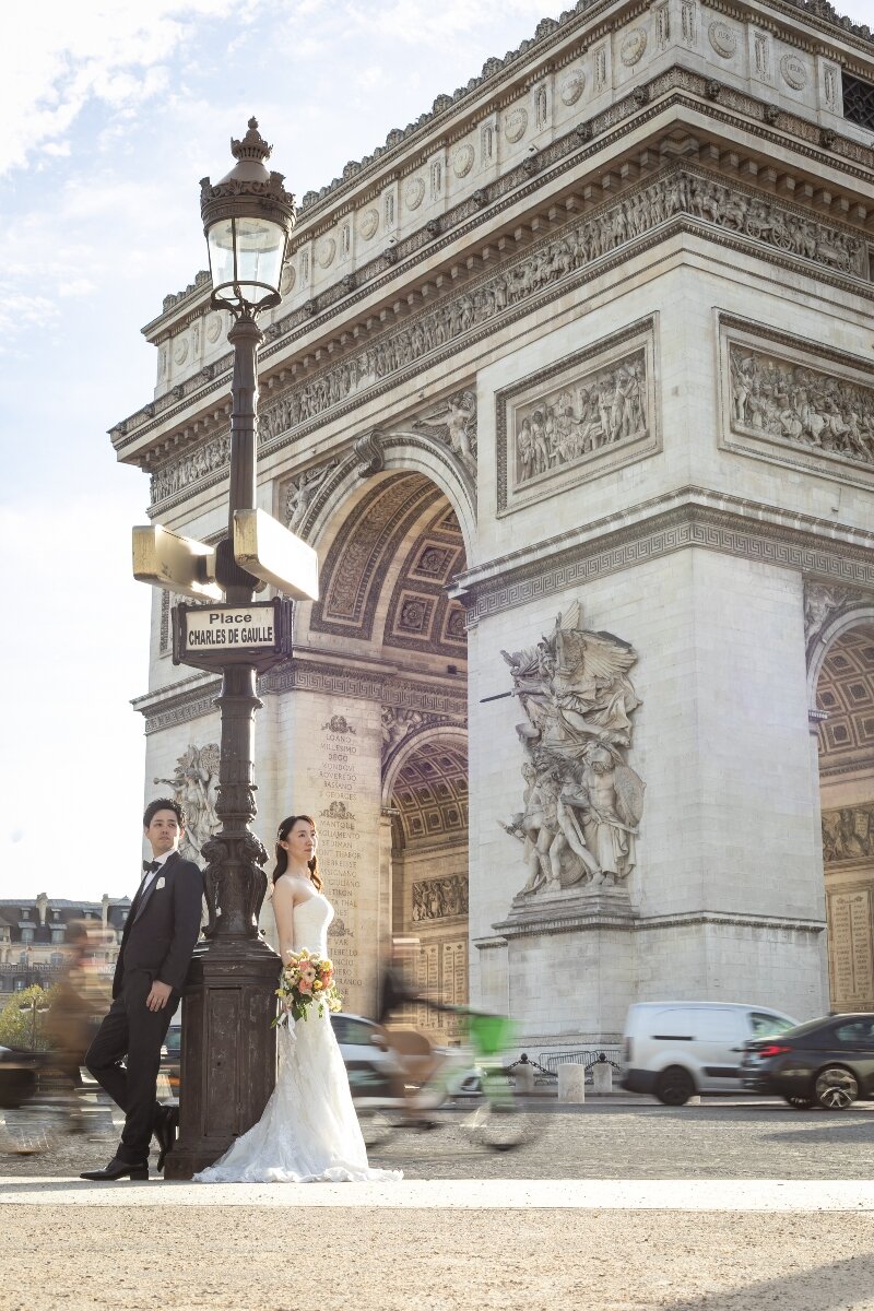 世界中の憧れが集まる街、フランス・パリ。優雅な佇まいを誇る エッフェル塔 と、歴史と気品を感じさせる 凱旋門。ふたつの象徴的なロケーションを巡りながら、パリならではの美しさを一度に残す特別なフォトウェディングをあなたに。