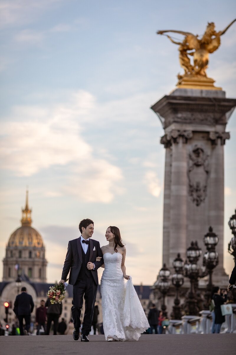 パリの空に美しくそびえる エッフェル塔 と、街を静かに流れる セーヌ川。フランスらしい情緒とロマンティックな空気に包まれながら、ふたりの物語を写真に残す特別なロケーションです。華やかさと静けさが共存するパリならではの舞台で、時を超えて愛される、洗練されたフォトウェディングを。